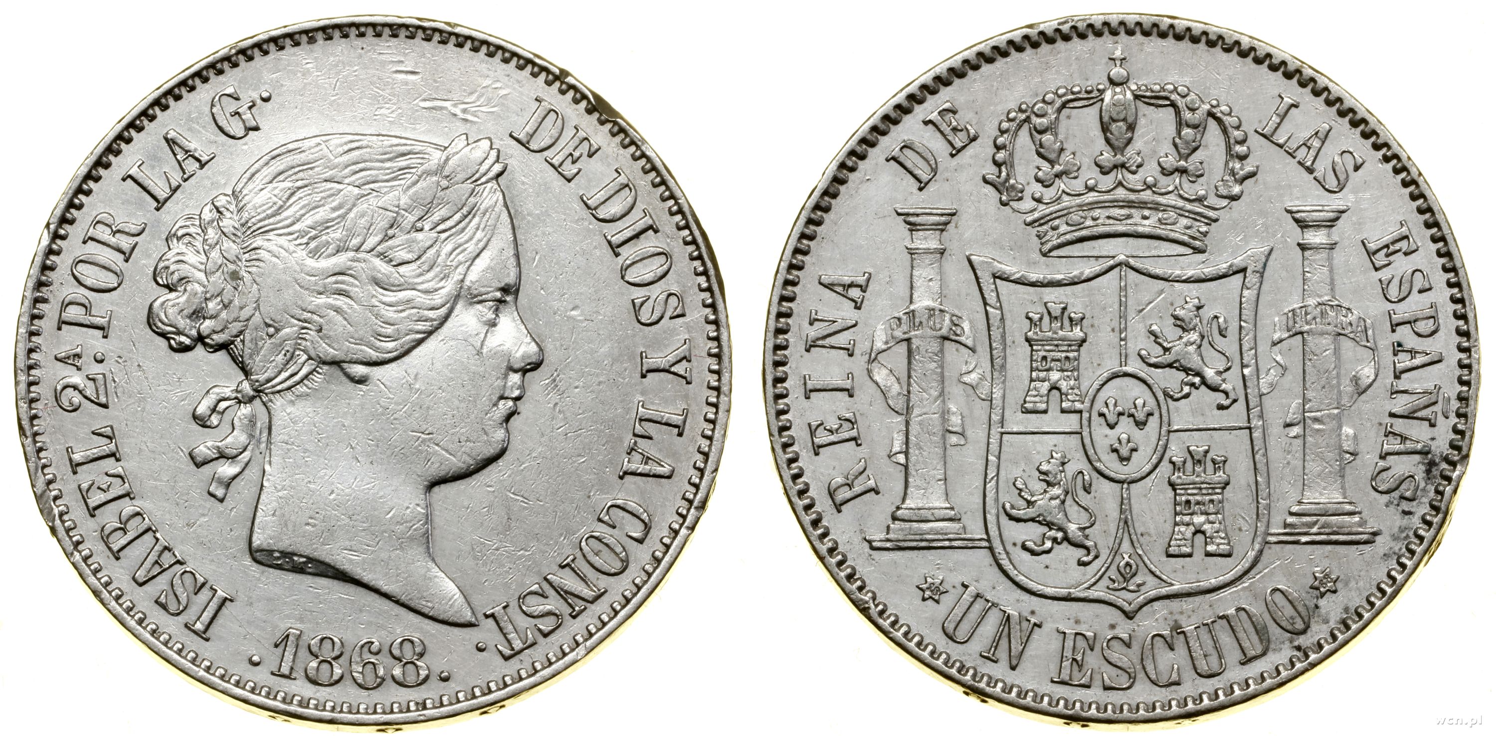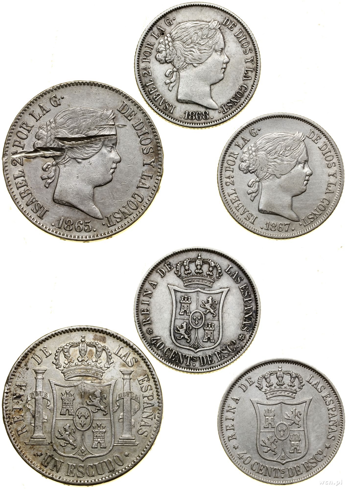 w skład zestawu wchodzi: 40 centymów 1867, 1868, 1 escudo... | III/IV |