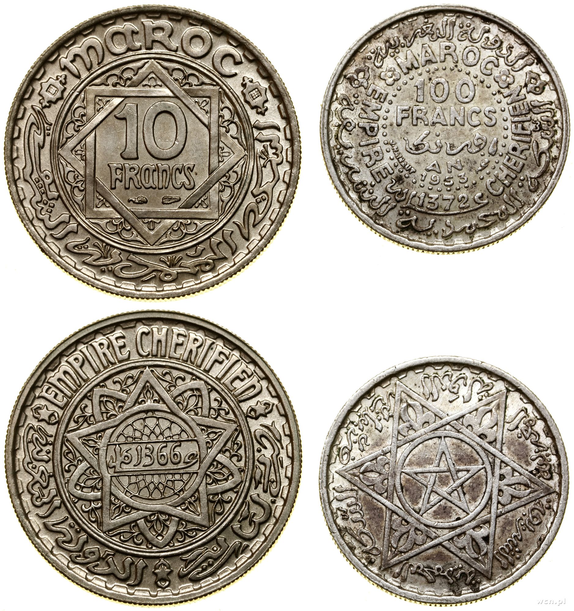 Maroko, zestaw: 2 x 10 franków, 1947–1953