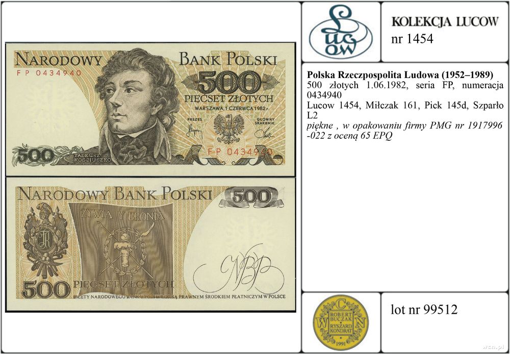 | Opis: | Polska - Polska Rzeczpospolita Ludowa (1952–1989), 500 złotych, 1.06.1982, seria FP, numeracja 0434940 |