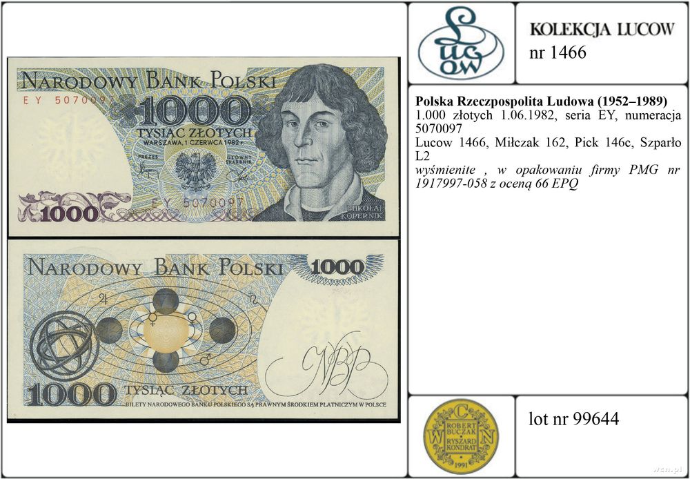| Opis: | Polska - Polska Rzeczpospolita Ludowa (1952–1989), 1.000 złotych, 1.06.1982, seria EY, numeracja 5070097 |
