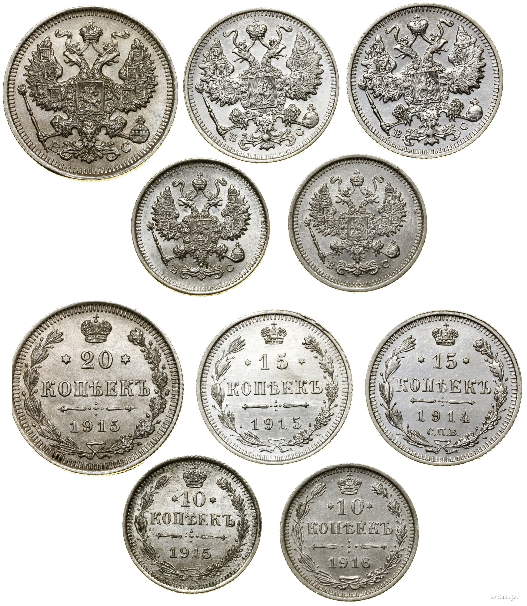 w zestawie: 10 kopiejek 1914, 10 kopiejek 1915, 15 kopiej... | I/III+ |