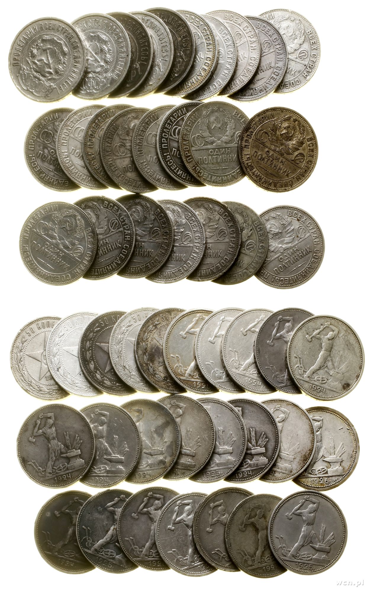 Rosja, zestaw 25 x 50 kopiejek, lata 1922–1925