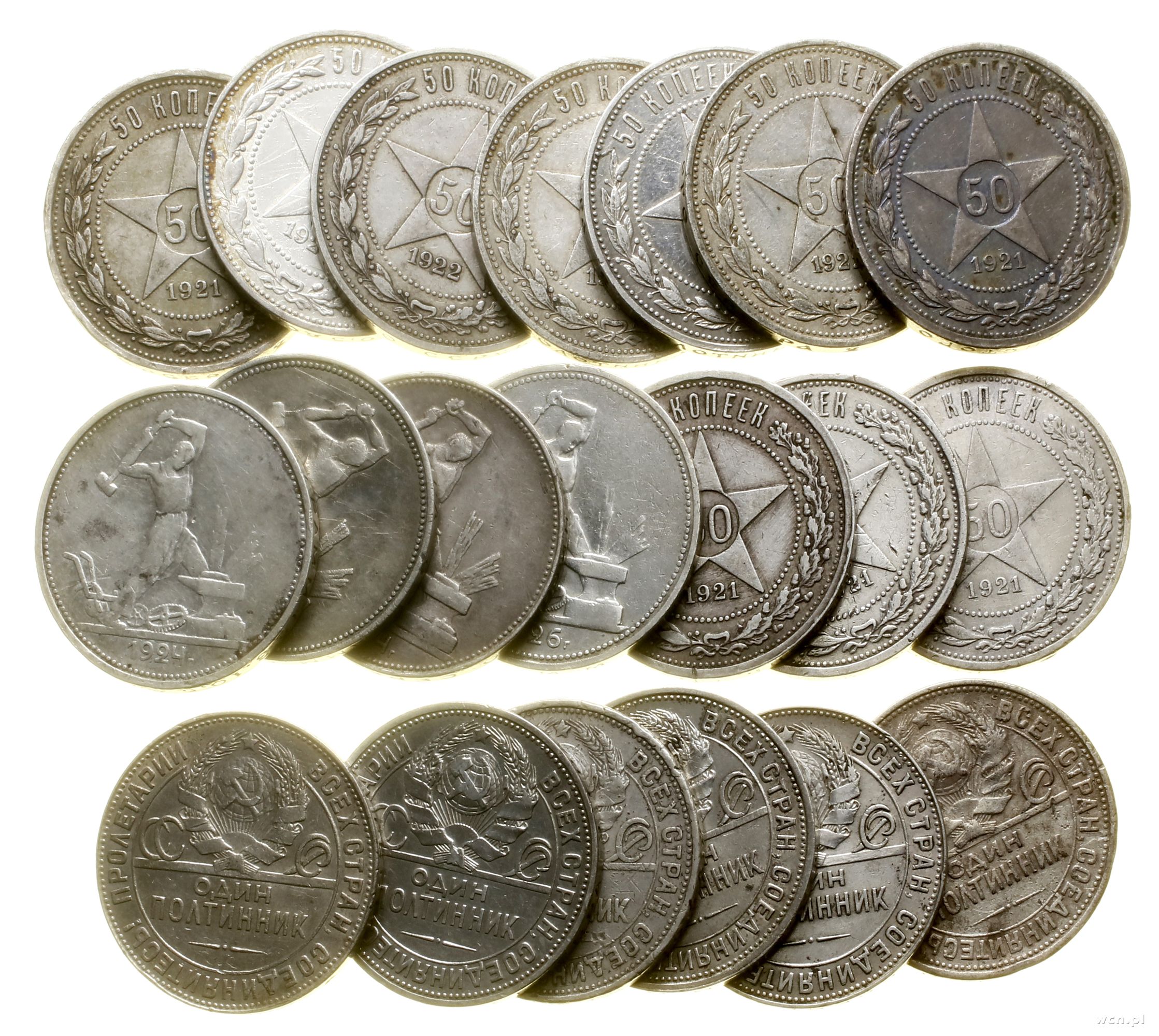 Rosja, zestaw 20 x 50 kopiejek, lata 1921–1926