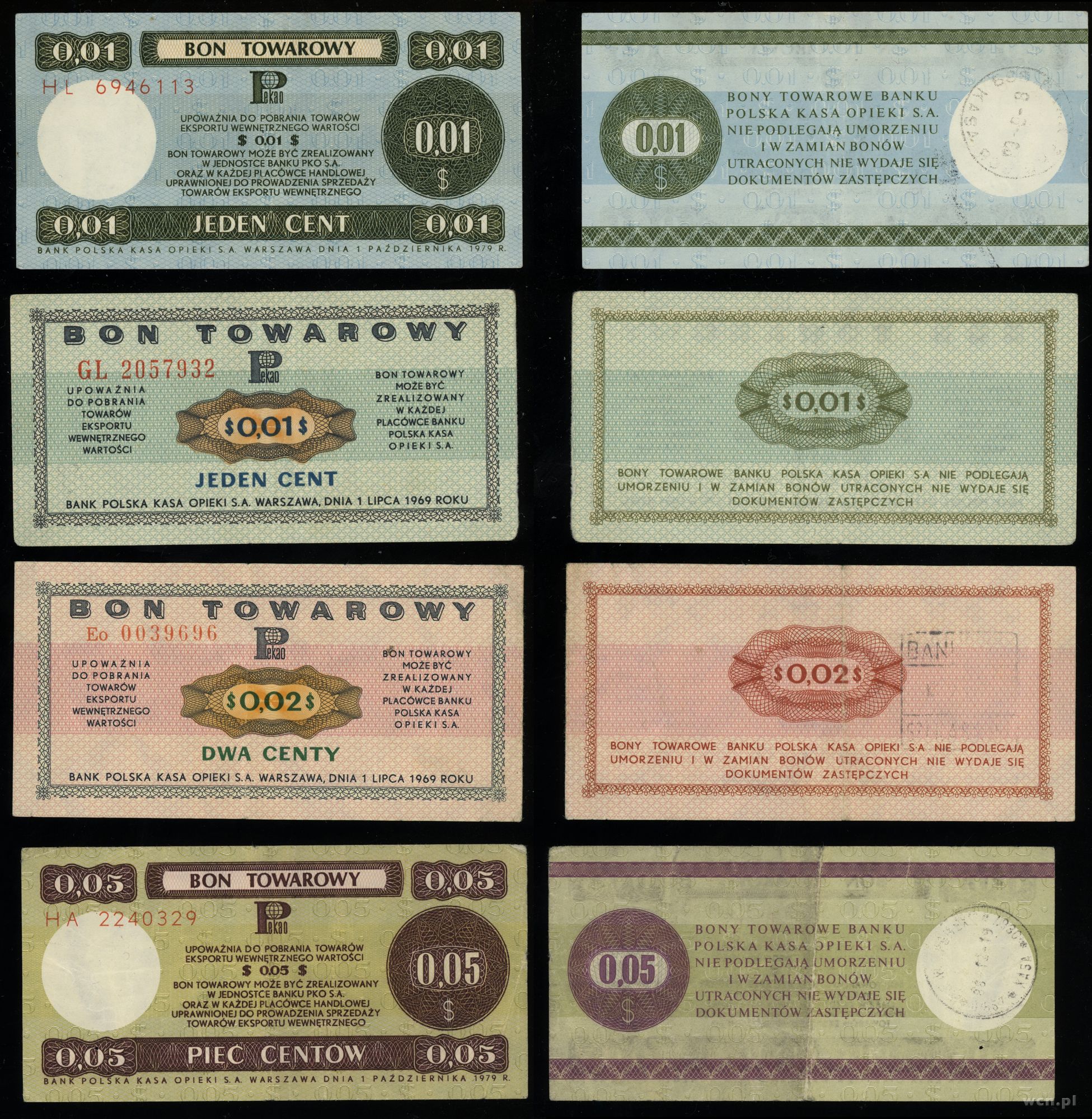 Polska, zestaw 6 bonów, 1.10.1979