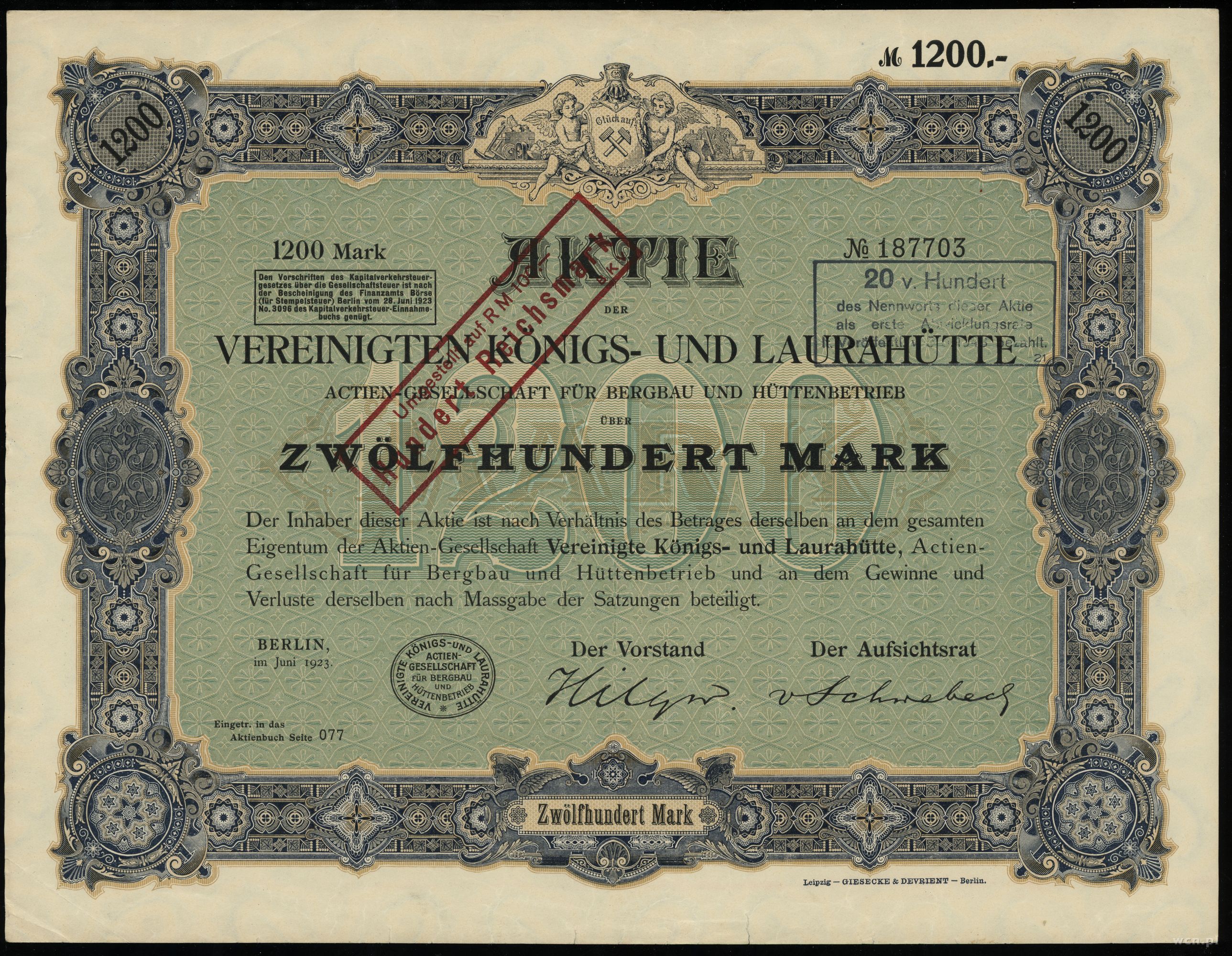 w zestawie: 1.200 marek 1923, 20 goldmarek 1924, 5.000 ma... | II+/III |