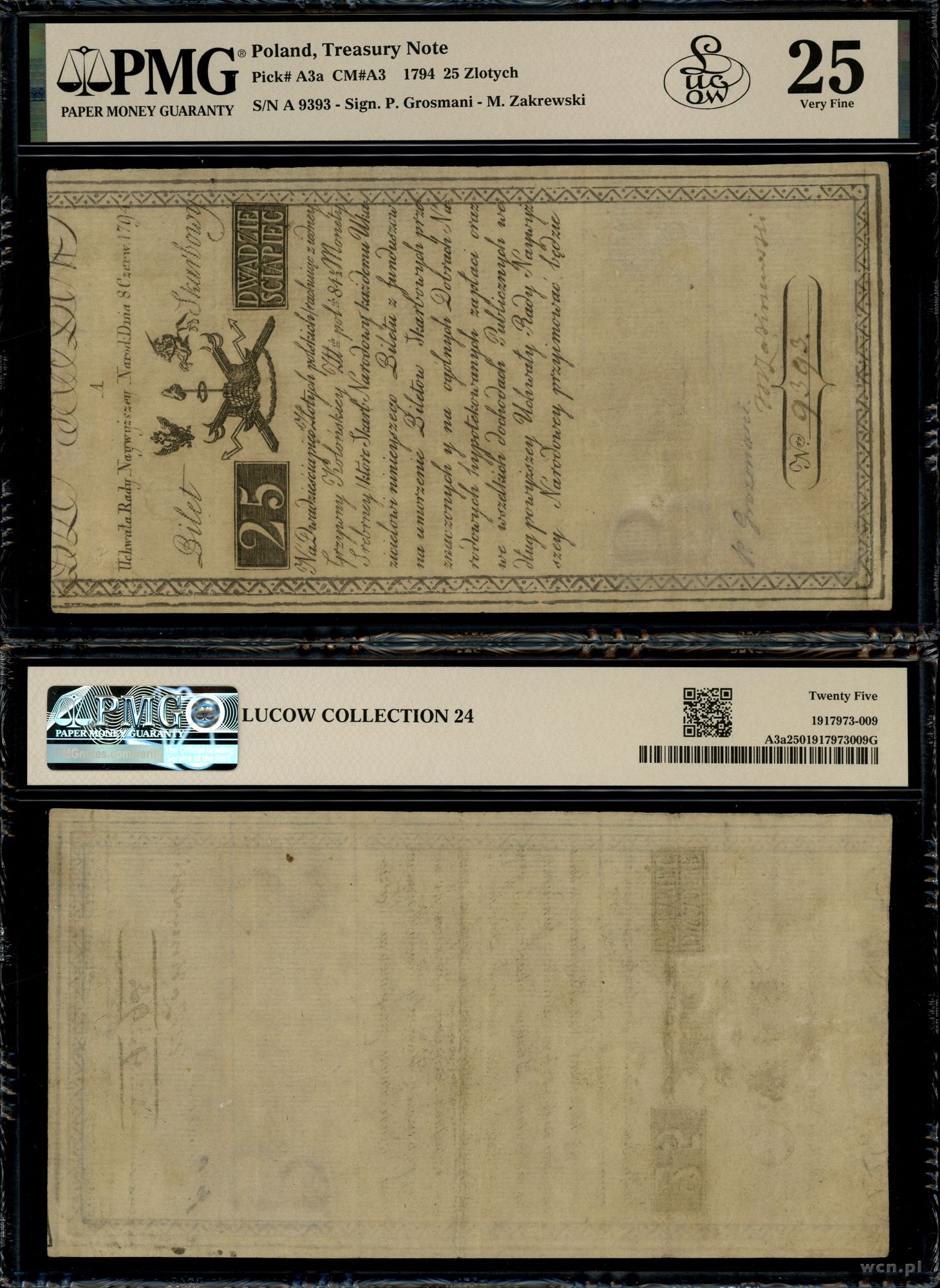 seria A, numeracja 9393, podpisy Piotra Grozmaniego i Mic... | III |