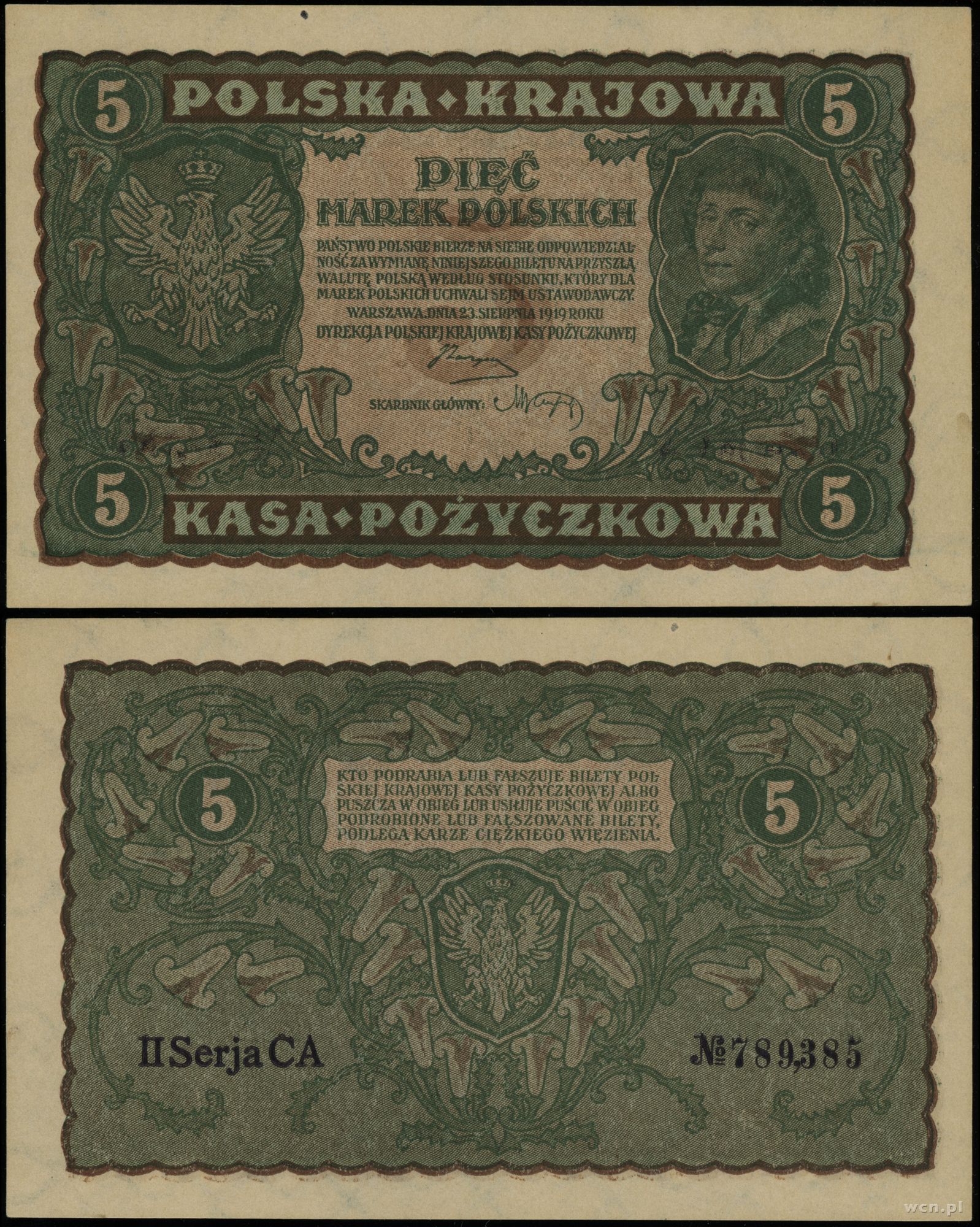 Polska, 5 marek polskich, 23.08.1919