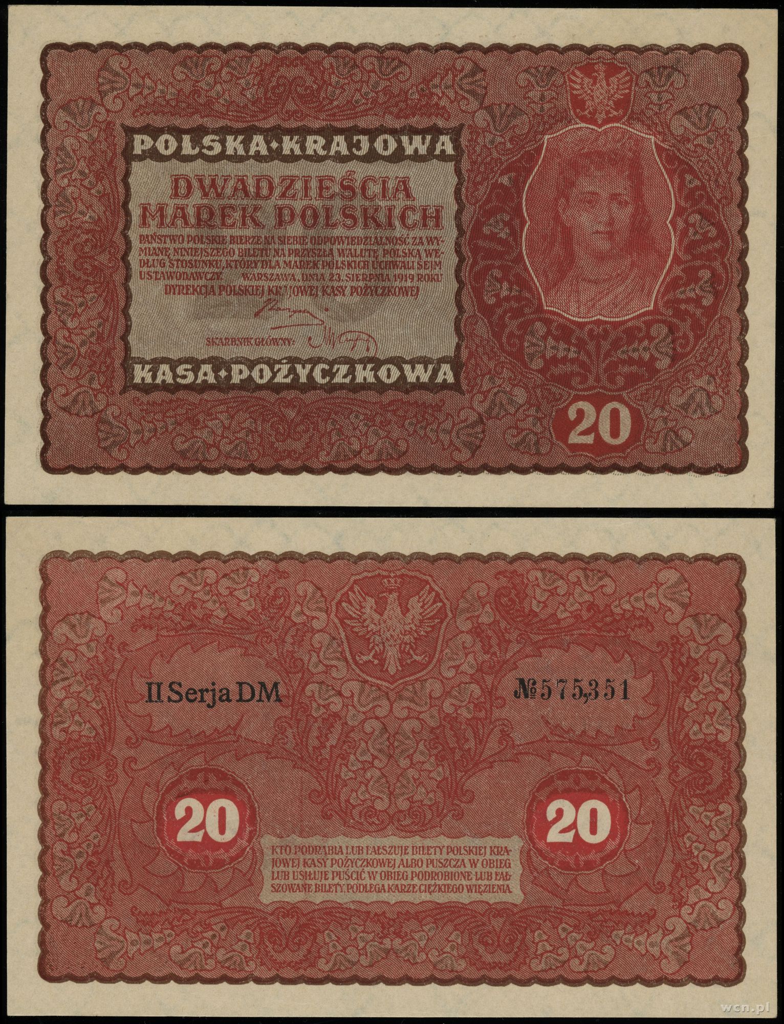Polska, 20 marek polskich, 23.08.1919