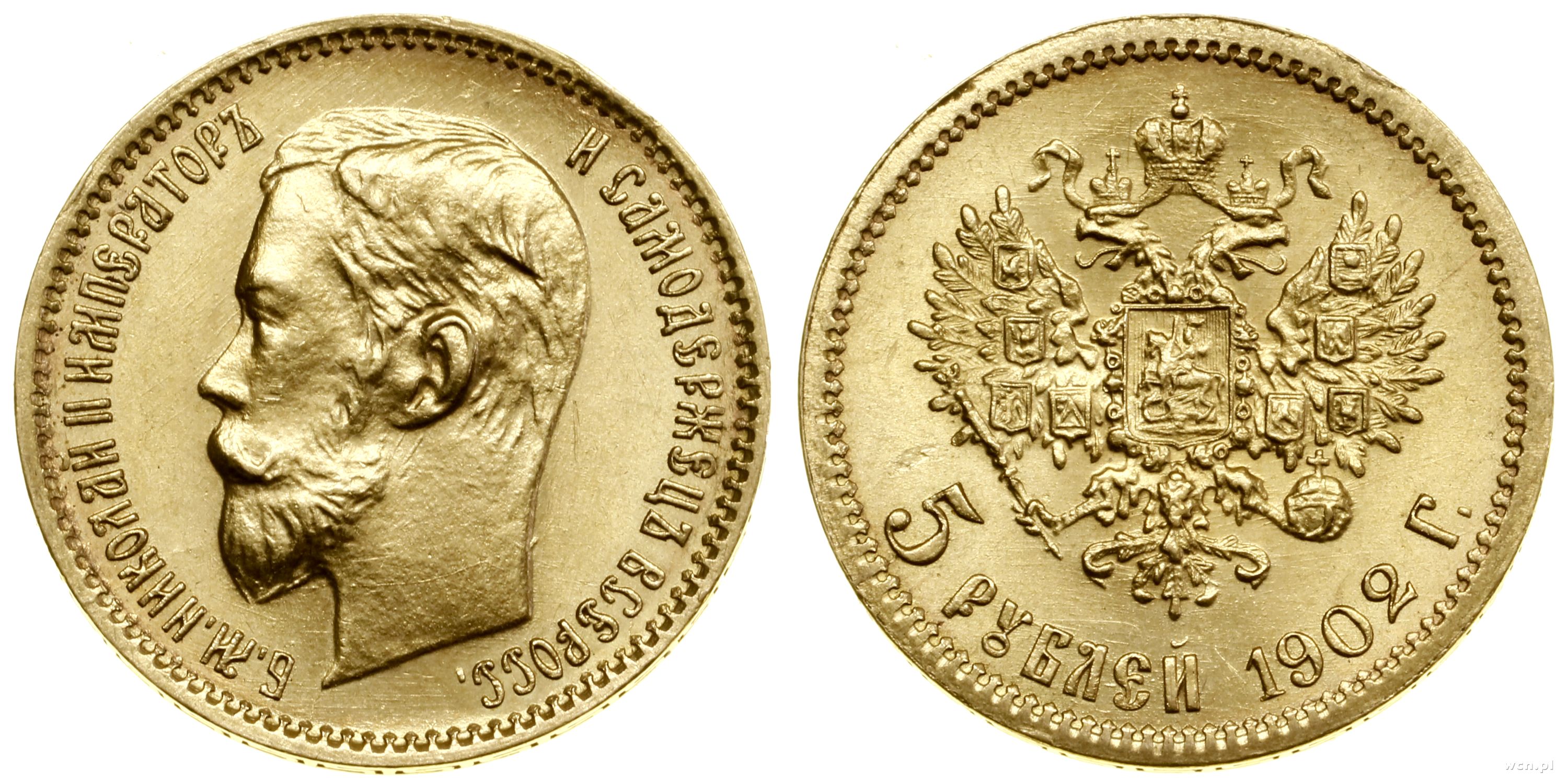 | Opis: | Rosja - Mikołaj II (1894–1917), 5 rubli, 1902 AP, Petersburg |