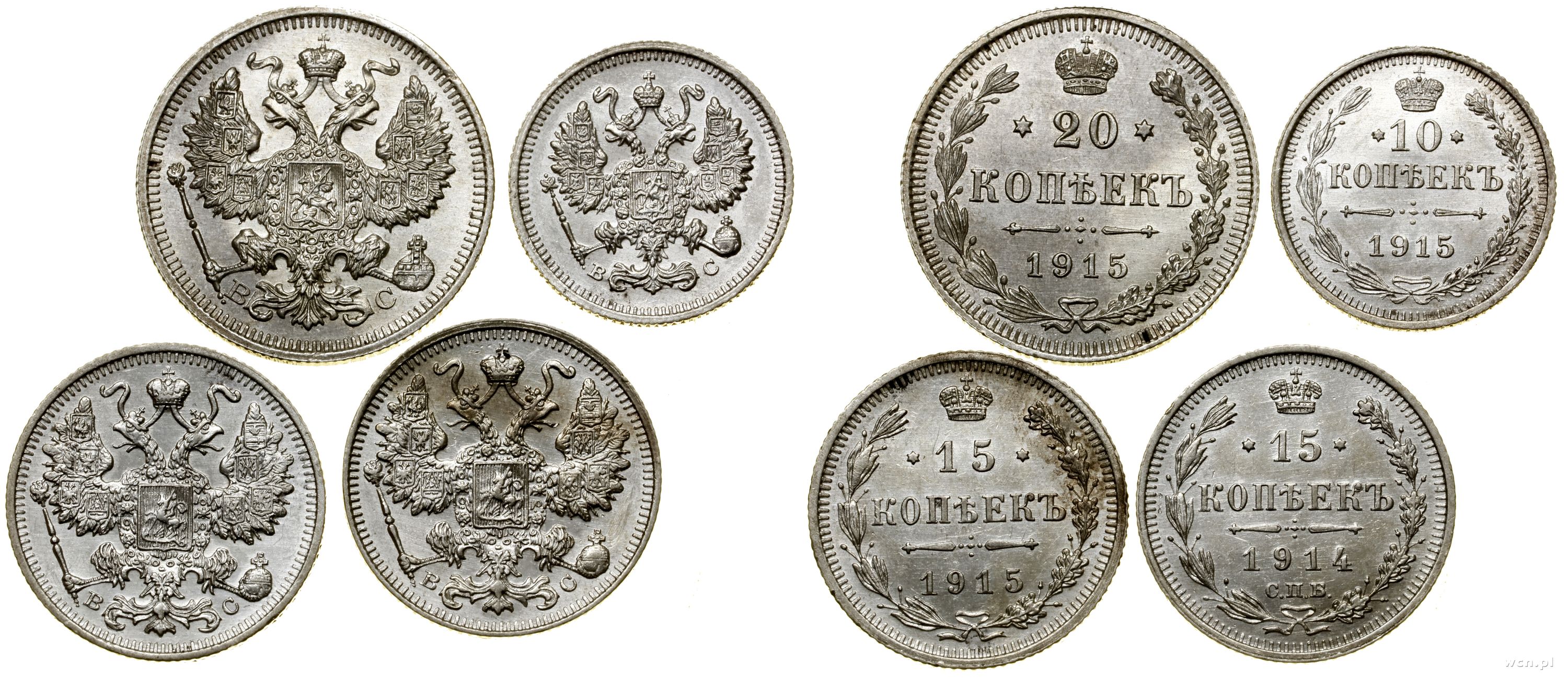 w zestawie: 10 kopiejek 1915, 15 kopiejek 1914, 15 kopiej... | I/I- |