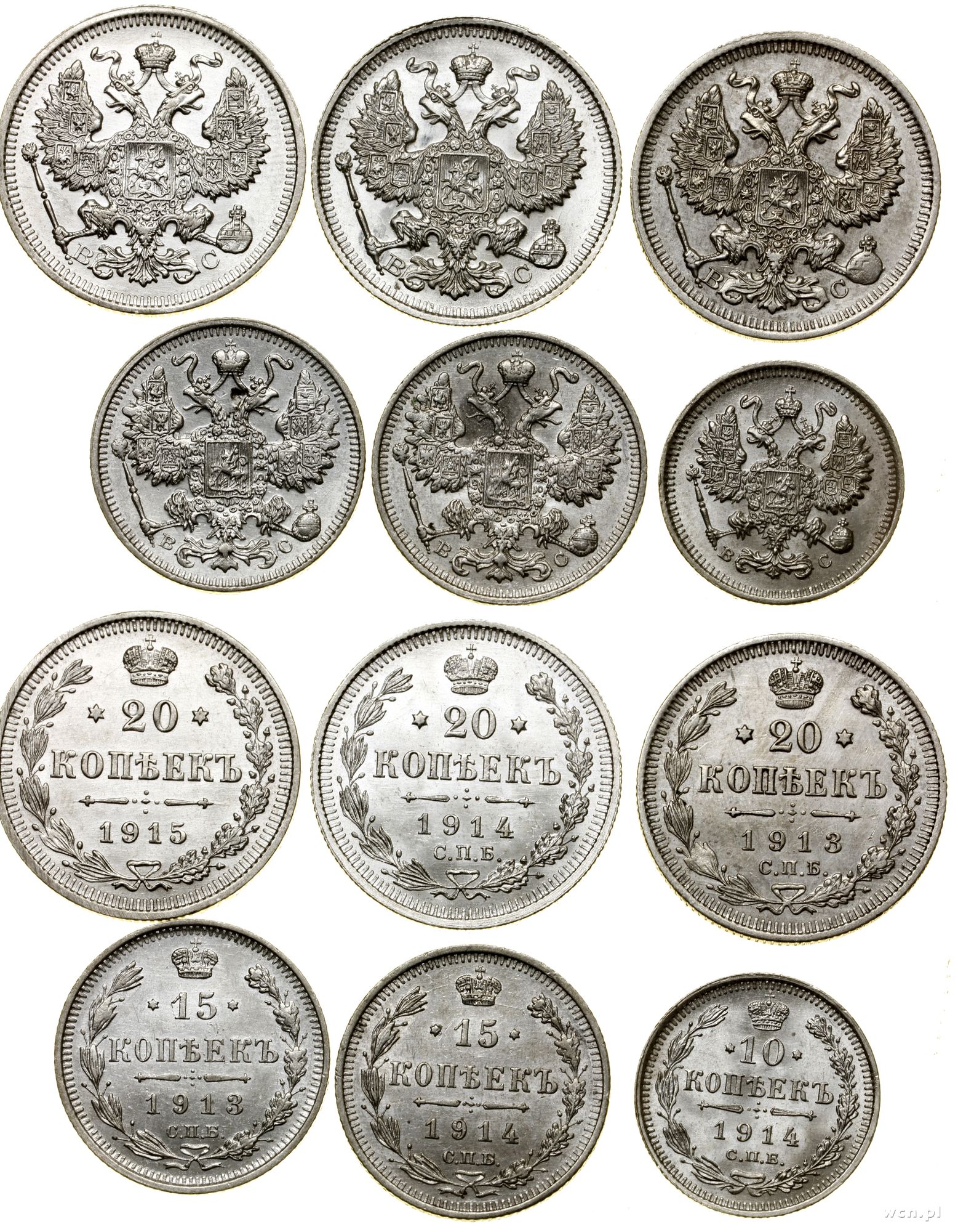 w zestawie: 10 kopiejek 1914, 15 kopiejek 1913, 15 kopiej... | I/I- |