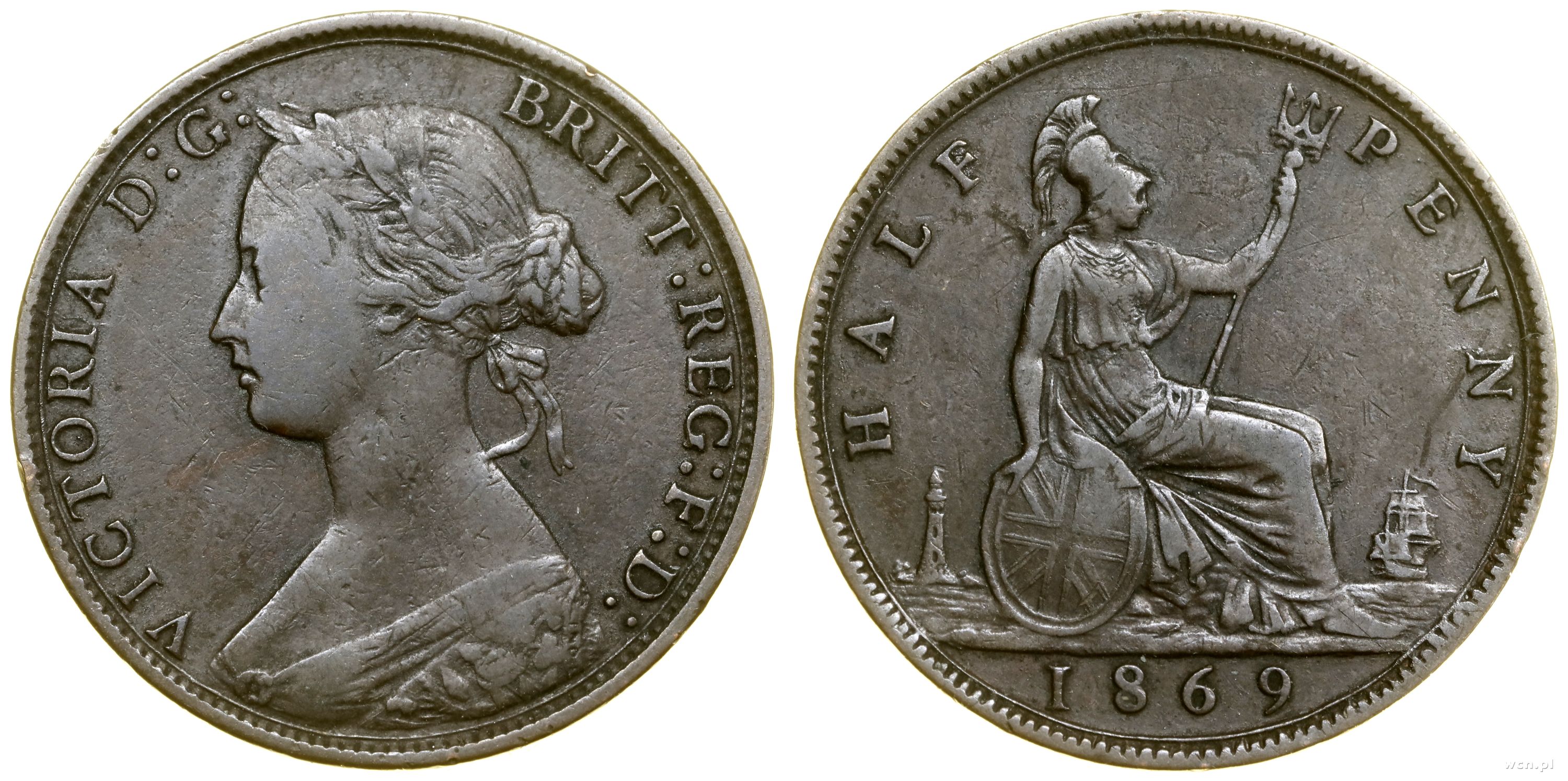 Wielka Brytania, 1/2 pensa, 1869