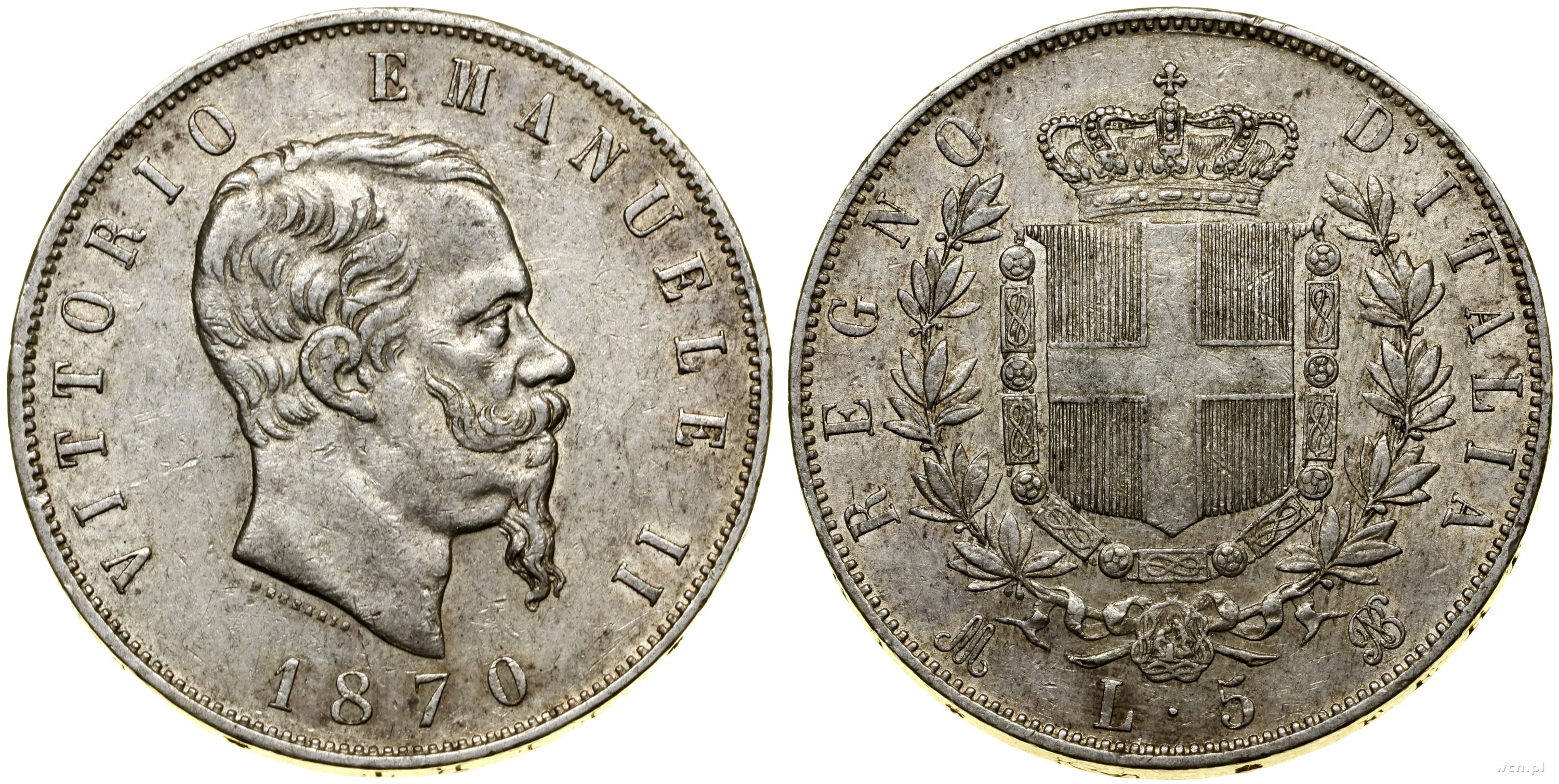 Włochy, 5 lirów, 1870 M