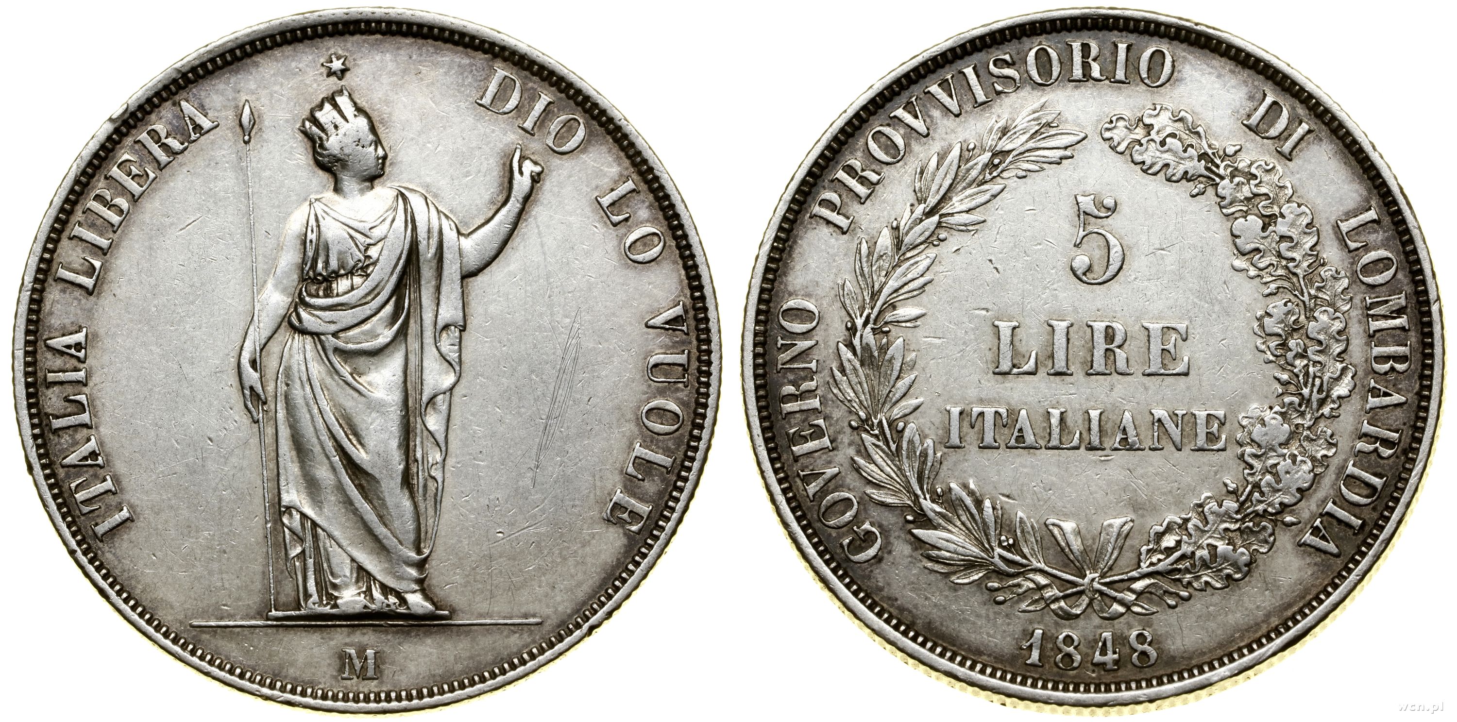 Włochy, 5 lirów (scudo), 1848 M