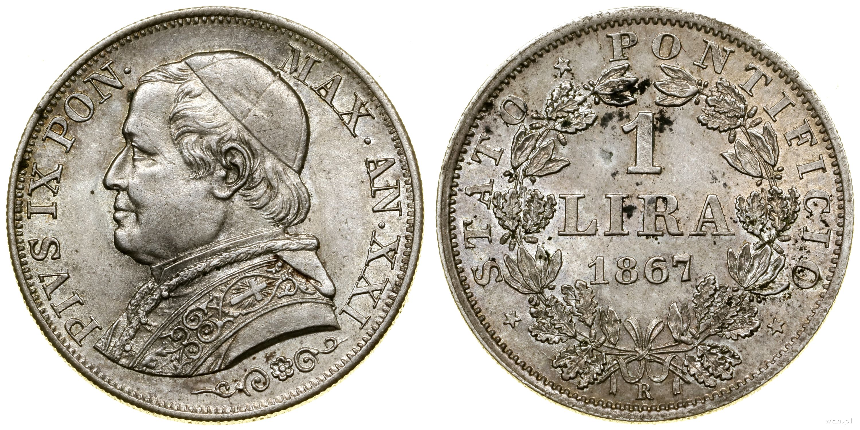 Watykan (Państwo Kościelne), 1 lir, 1867 R