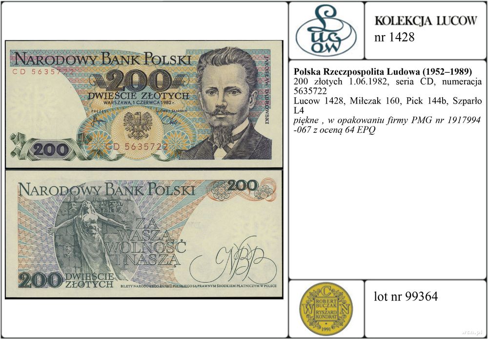 | Opis: | Polska - Polska Rzeczpospolita Ludowa (1952–1989), 200 złotych, 1.06.1982, seria CD, numeracja 5635722 |