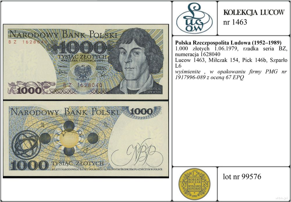 | Opis: | Polska - Polska Rzeczpospolita Ludowa (1952–1989), 1.000 złotych, 1.06.1979, rzadka seria BZ, numeracja 1628040 |