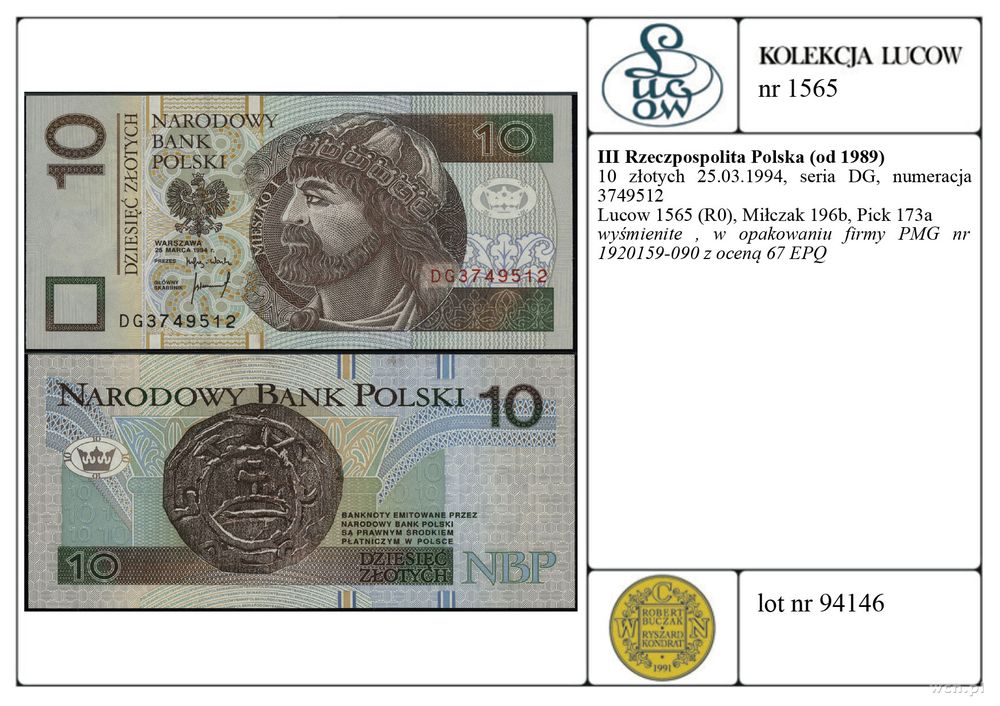 | Literatura: | Lucow 1565 (R0), Miłczak 196b, Pick 173a |