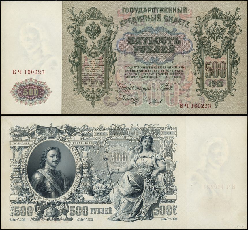 | Opis: | Rosja - Mikołaj II (1894–1917), zestaw: 100 i 500 rubli, (1917-1918), podpisy: Шипов |