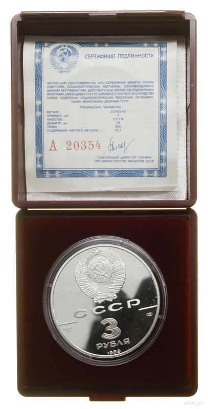 | Opis: | Rosja - ZSRS (1922–1991), 3 ruble, 1989, Leningrad, 500-lecie zjednoczonego Państwa Rosyjskiego - Iwan III (pierwsze rosyjskie monety) |