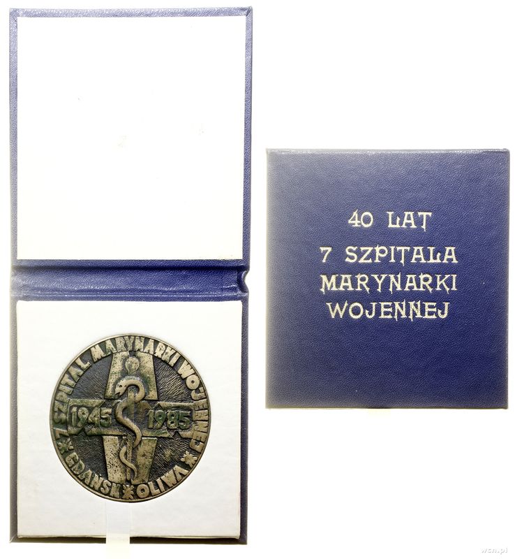 | Opis: | Polska - Polska Rzeczpospolita Ludowa (1952–1989), 40 lat Szpitala Marynarki Wojennej w Gdańsku Oliwie, 1985, Aw: Kotwica na tle Krzyża Grunwaldu, Rw: Laska Eskulapa, po bokach 1945 - 1985, 7 SZPITAL MARYNARKI WOJENNEJ - GDAŃSK - OLIWA |