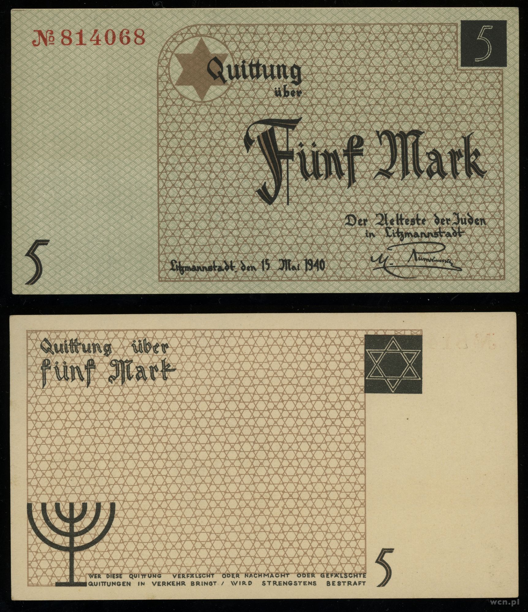 getto Teresin w Czechach, zestaw: 1, 2, 5, 10, 20, 50 i 100 koron, 1.01.1943