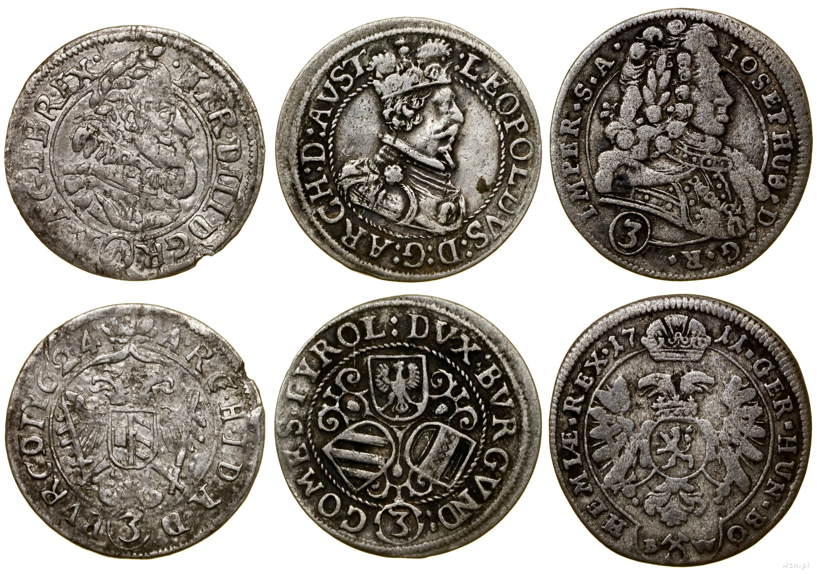 Austria, zestaw 3 x 3 krajcary, 1624, 1626, 1631
