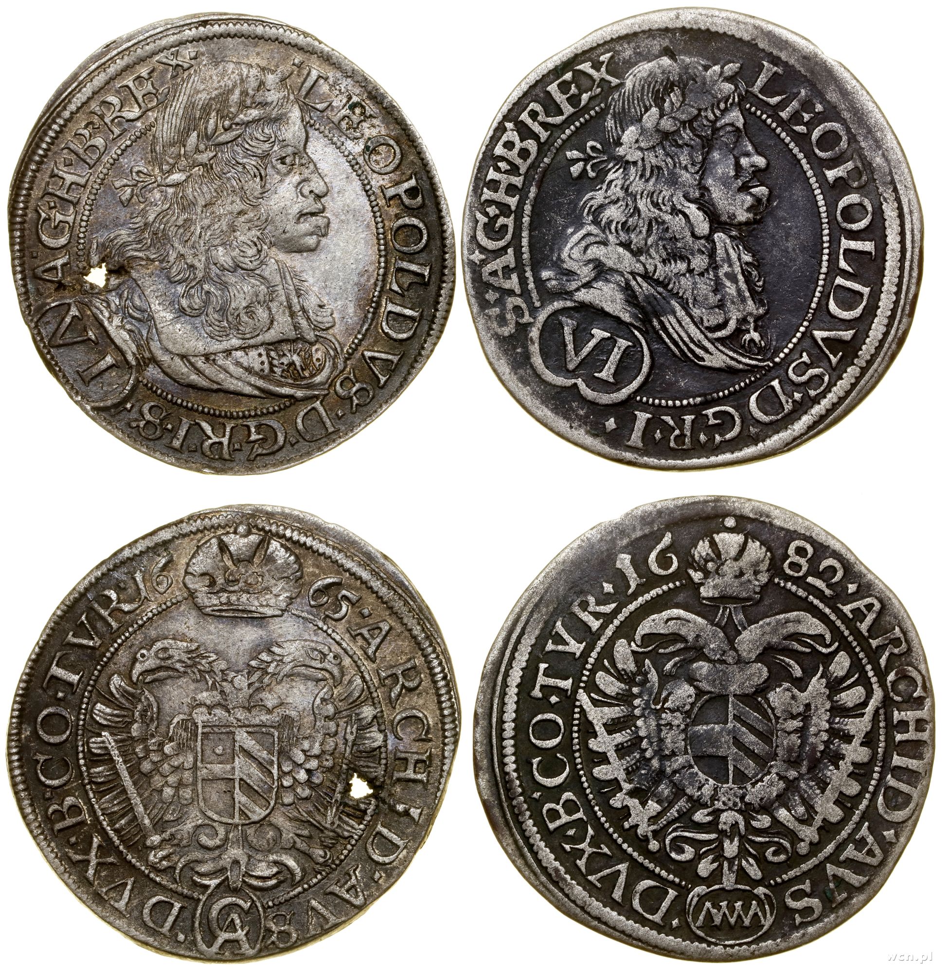 Austria, zestaw 2 x 6 krajcarów, 1665 CA, 1682