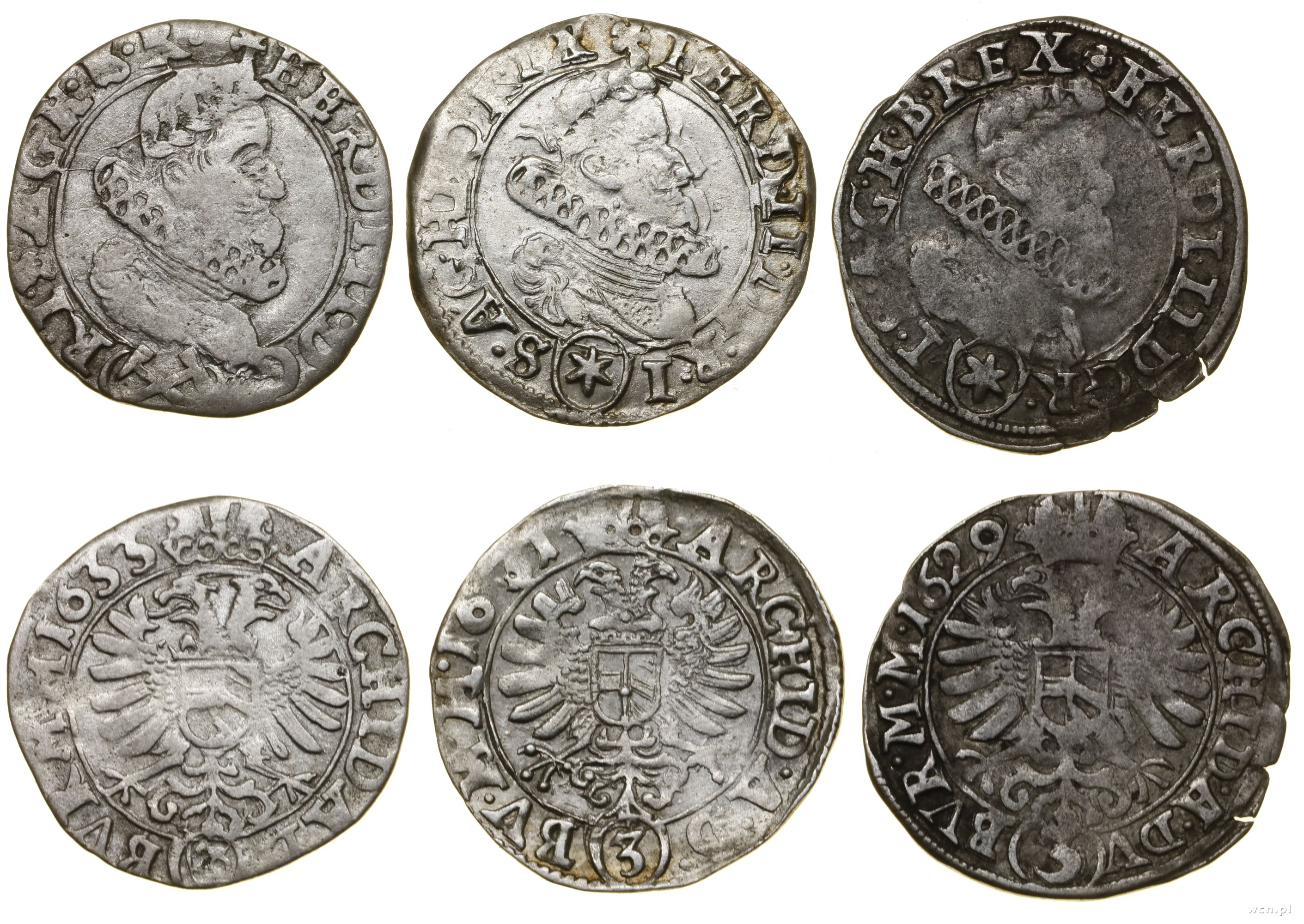 Austria, zestaw 3 x 3 krajcary, 1629, 1631, 1633