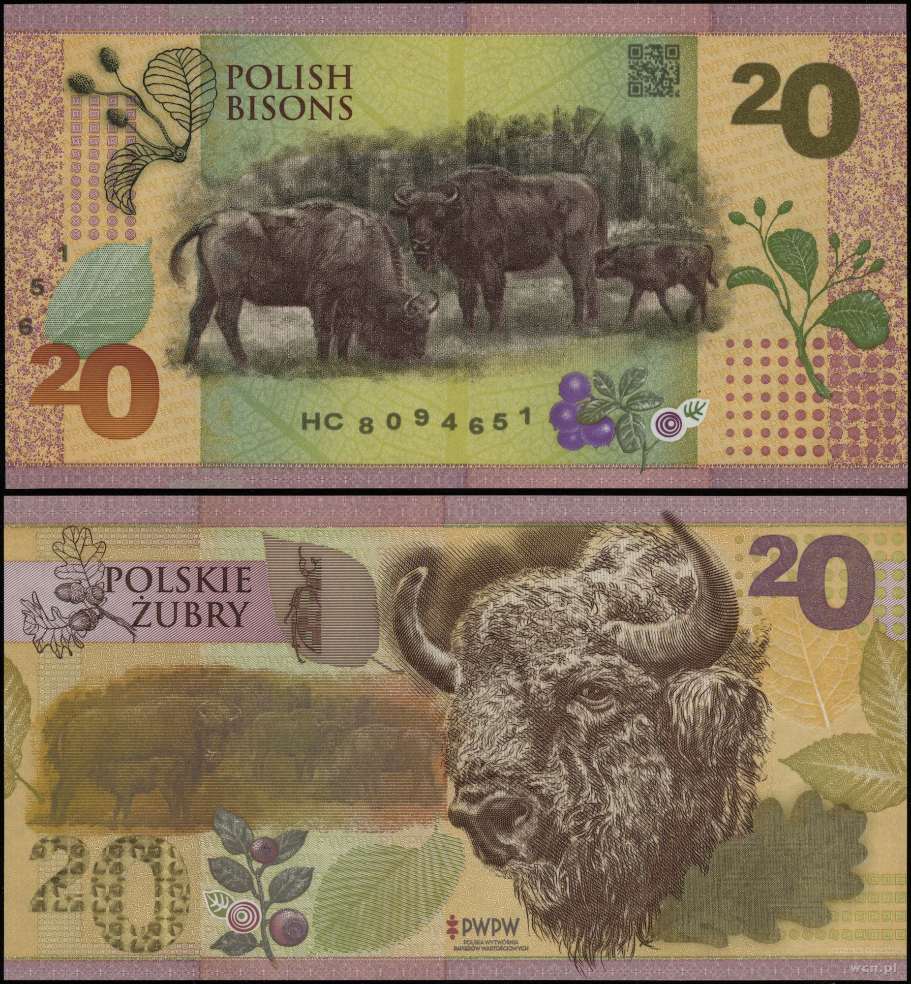 Polska, banknot testowy PWPW - 20 units - Polskie Żubry, 2018