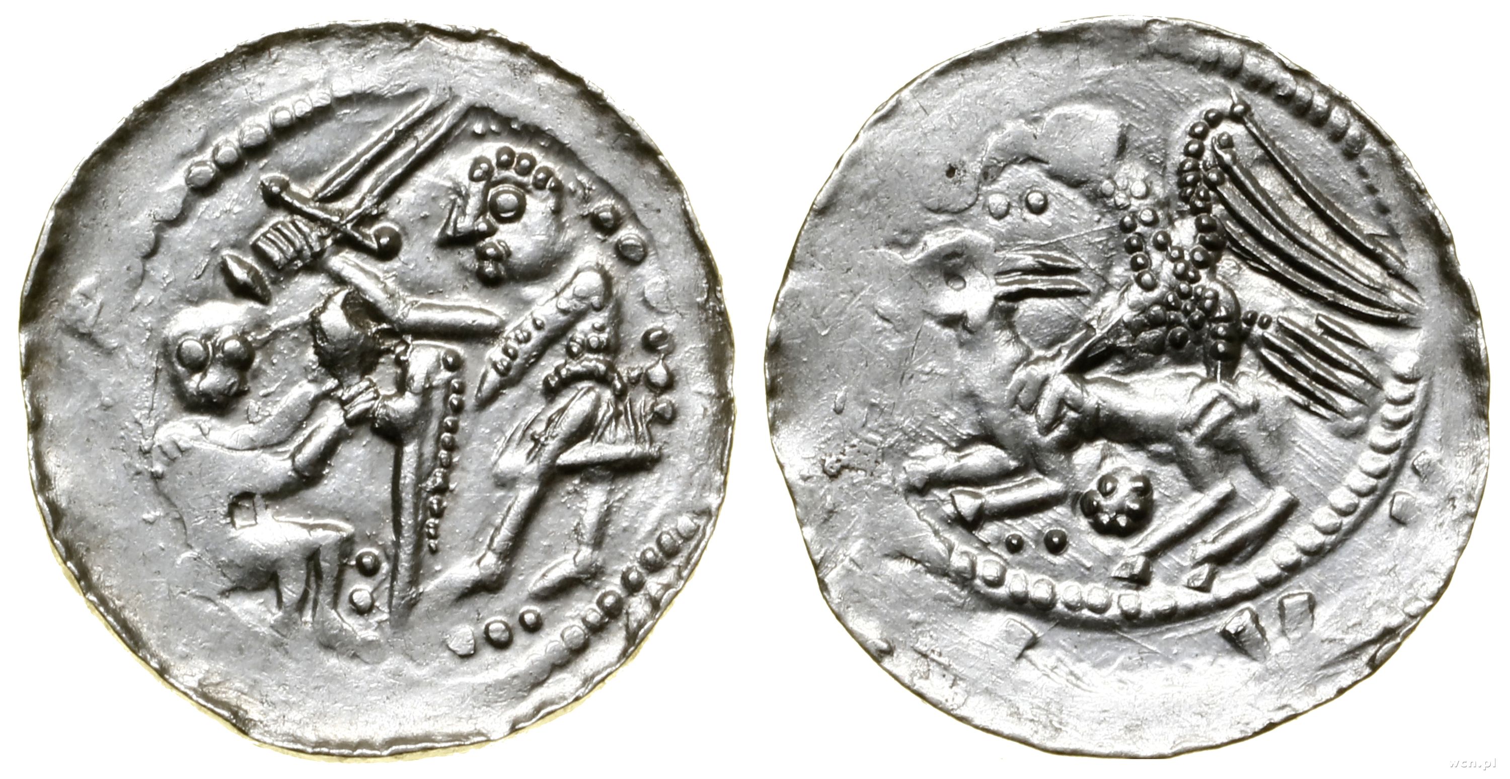Aw: Rycerz z mieczem i tarczą, stojący nad jeńcem, legend... | II+ |