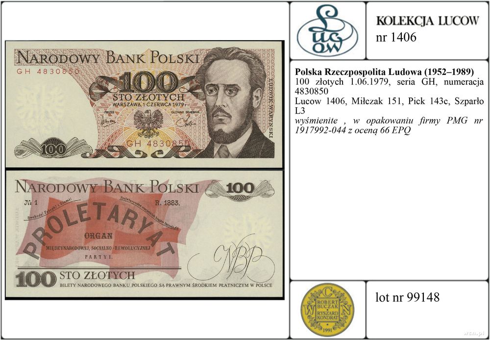 | Opis: | Polska - Polska Rzeczpospolita Ludowa (1952–1989), 100 złotych, 1.06.1979, seria GH, numeracja 4830850 |