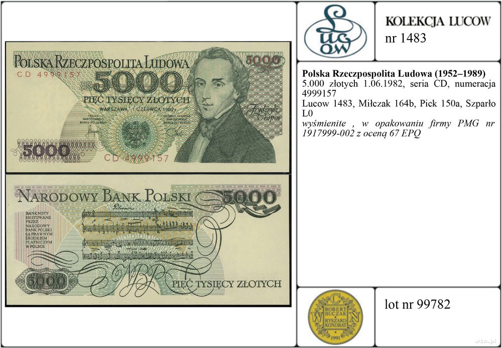 | Opis: | Polska - Polska Rzeczpospolita Ludowa (1952–1989), 5.000 złotych, 1.06.1982, seria CD, numeracja 4999157 |