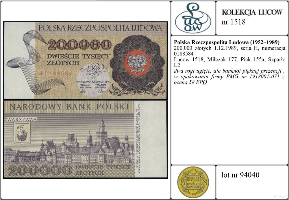| Literatura: | Lucow 1518, Miłczak 177, Pick 155a, Szparło L2 |