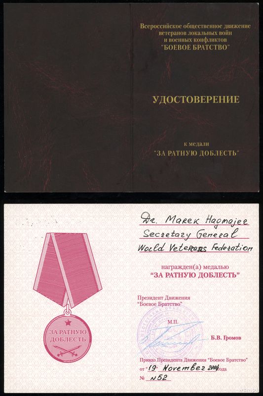 | Dodatkowe informacje: | biały metal, 32.5 mm, 25.36 g (ze wstążką), dodatkowo legitymacja wystawiona na nazwisko Hagmajer Marek, całość w plastikowym etui |