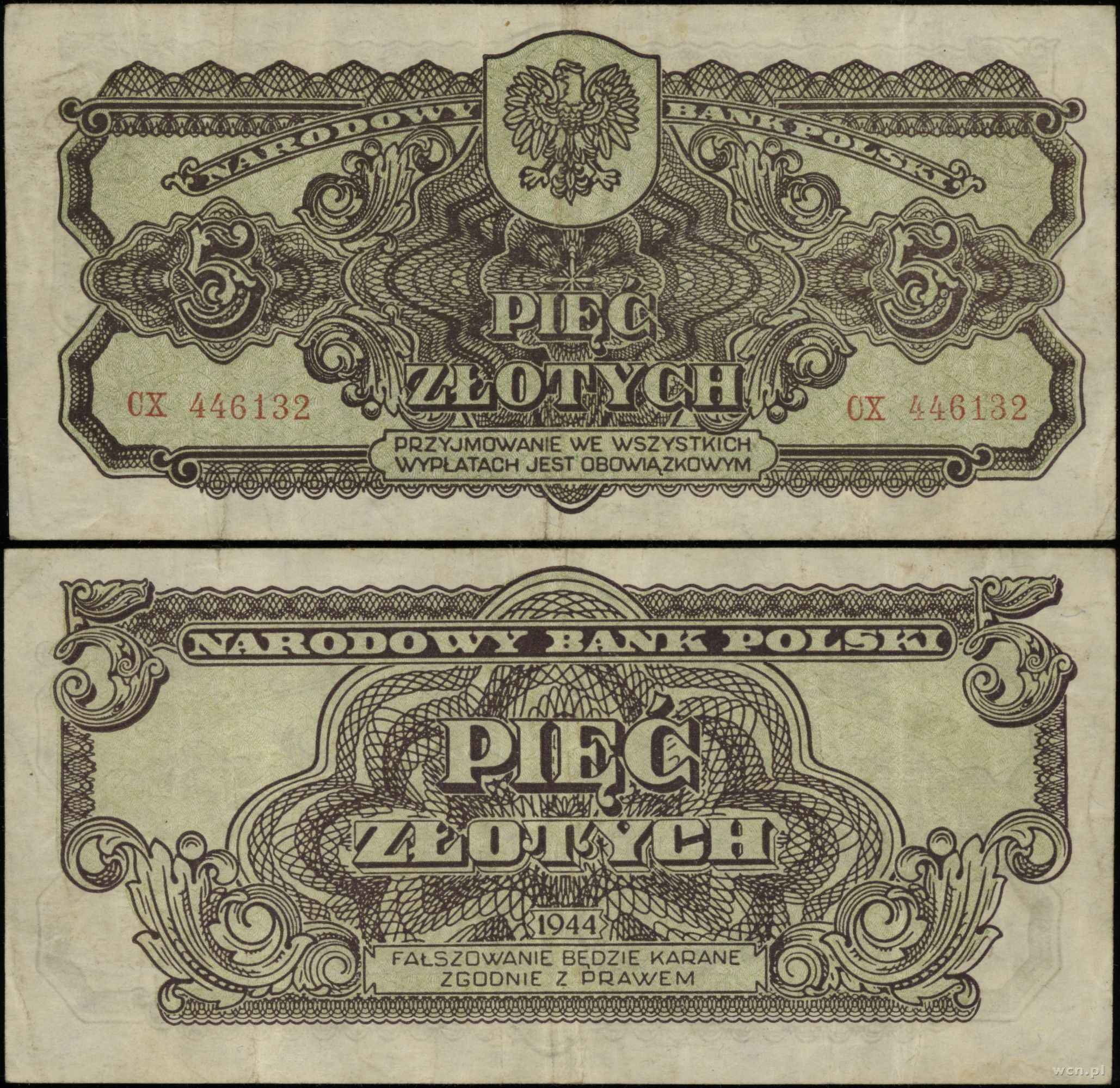 Polska, 5 złotych, 1944