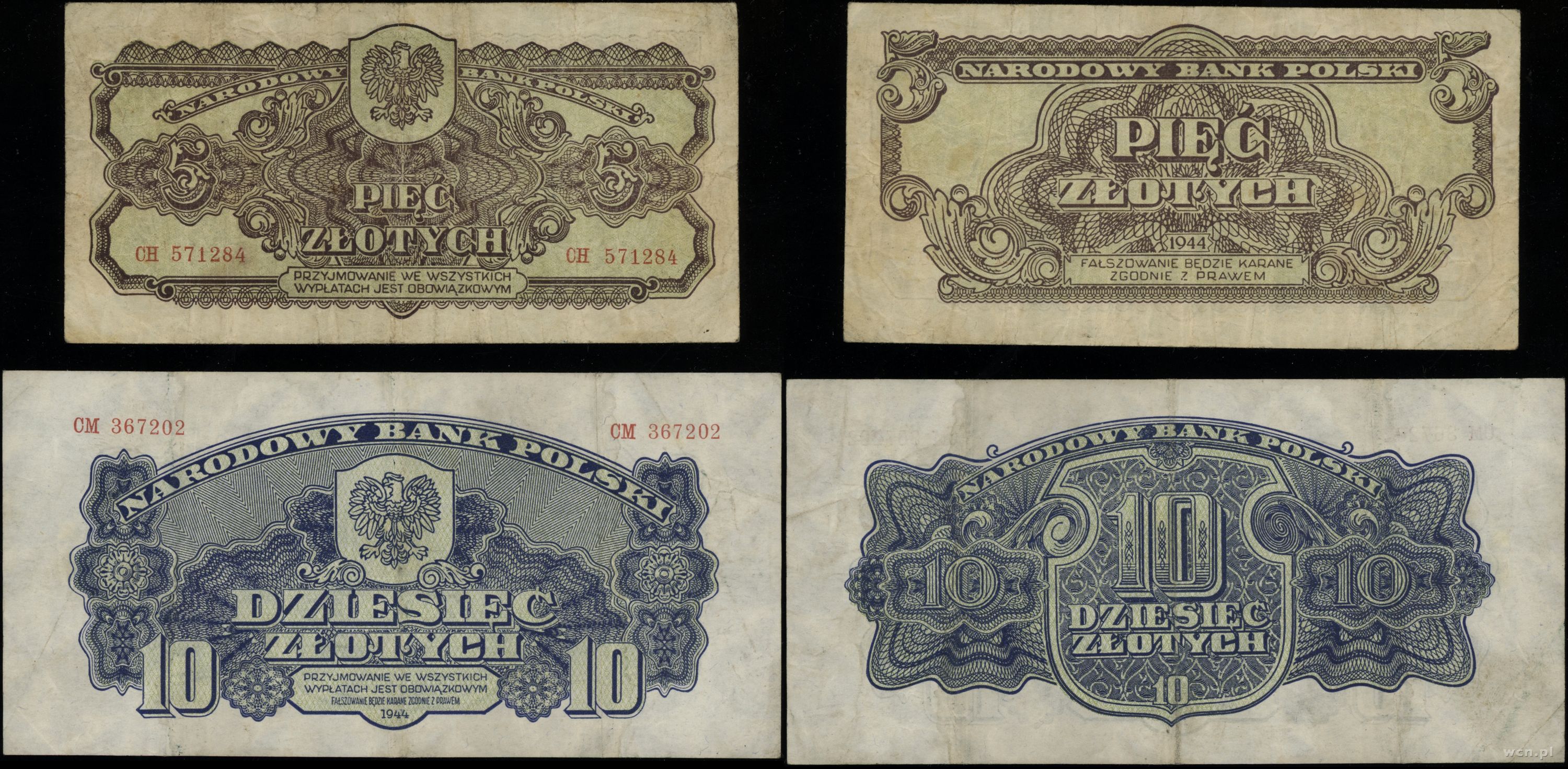 Polska, zestaw 2 banknotów, 1944