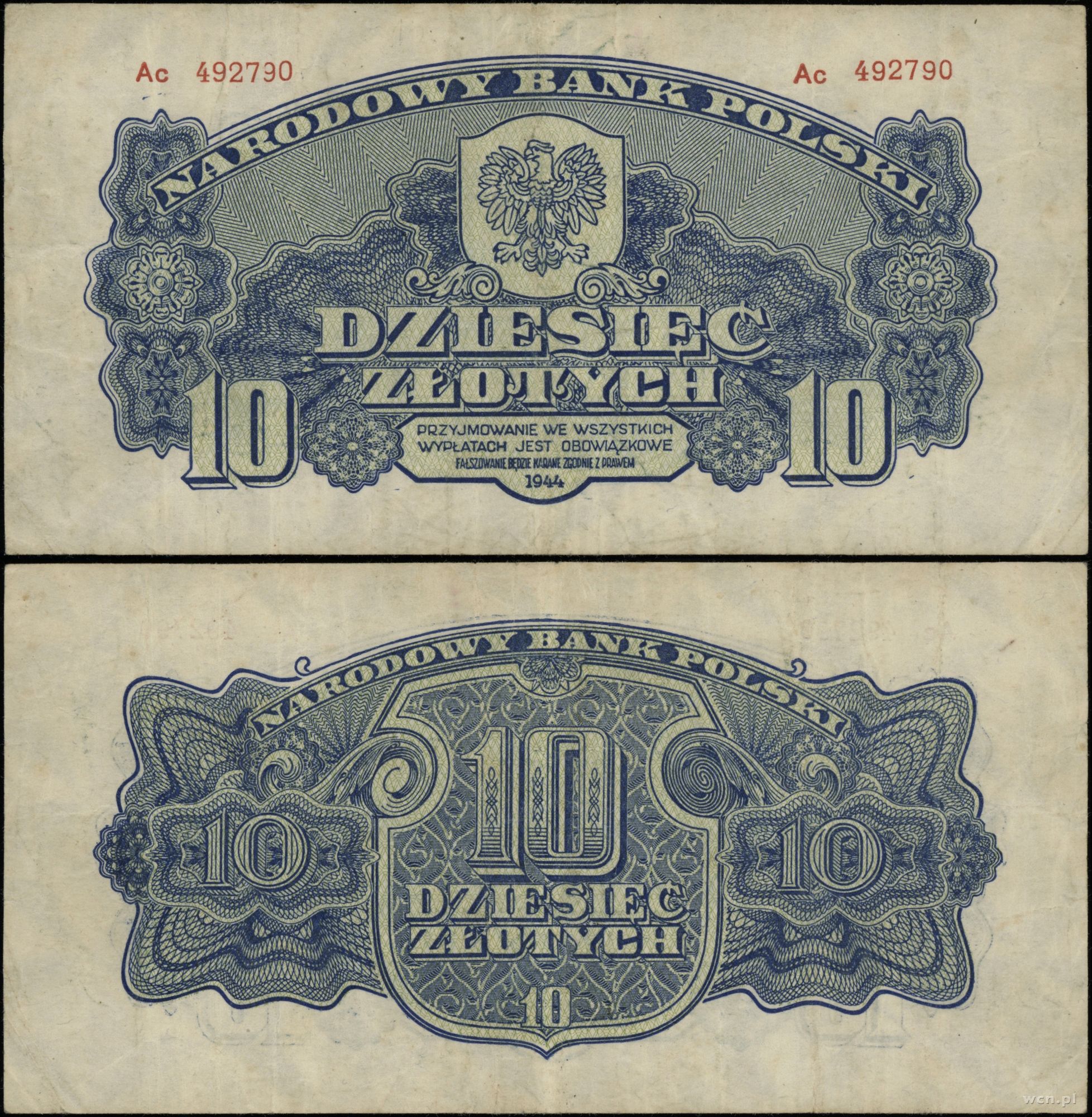 Polska, 10 złotych, 1944