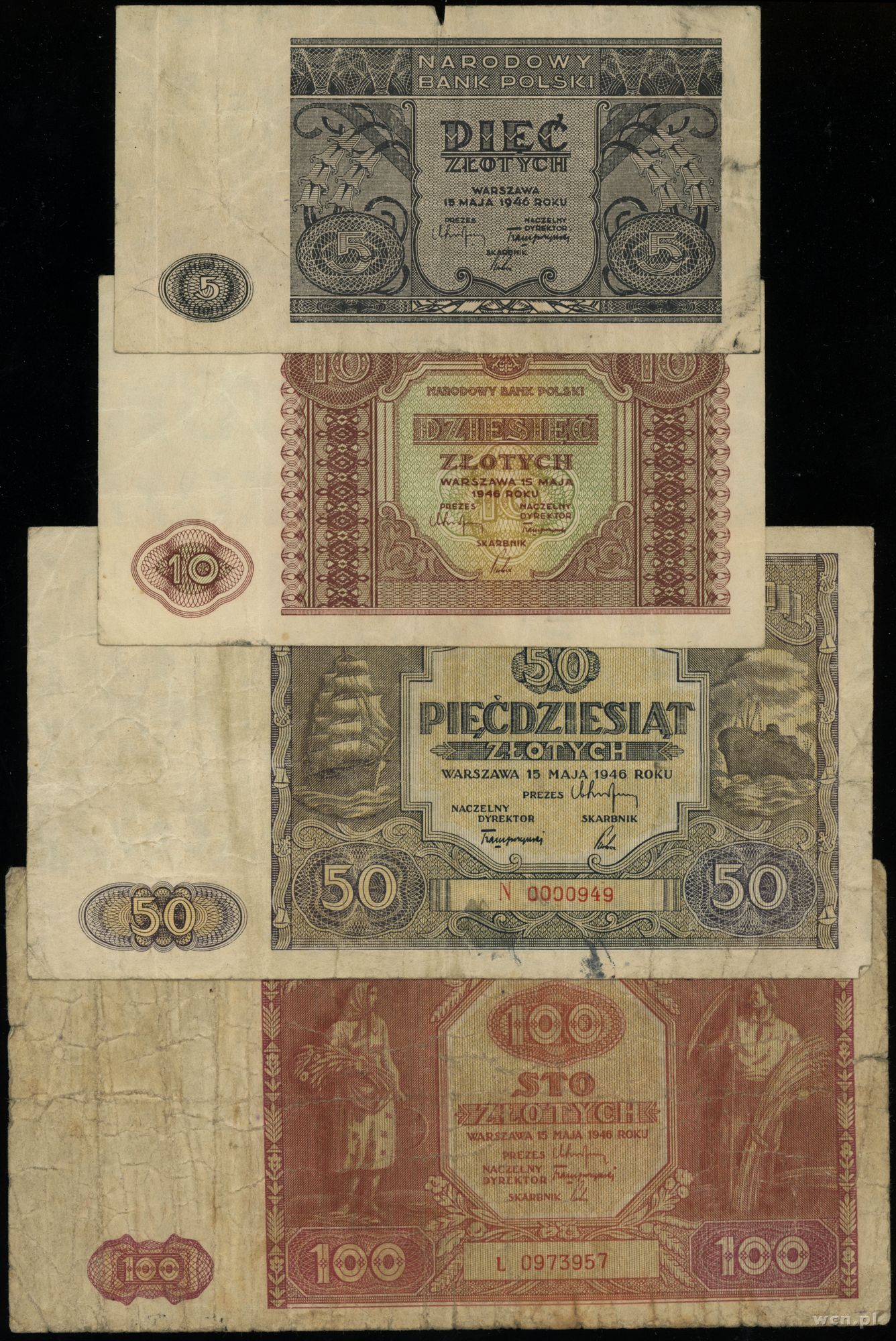 Polska, zestaw 4 banknotów, 15.05.1946