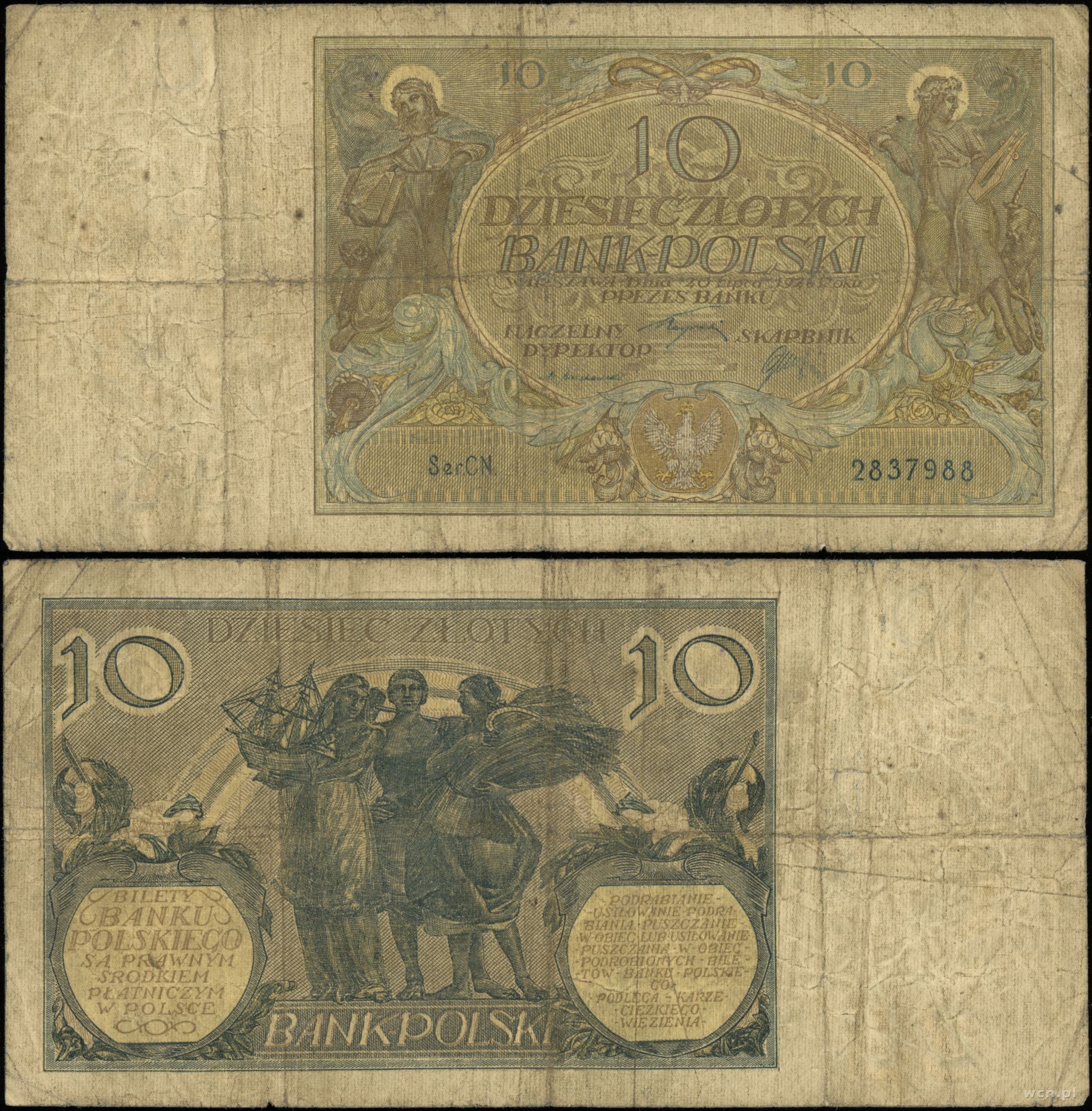 seria CN., numeracja 2837988, znak wodny “10 ZŁ” | VI |