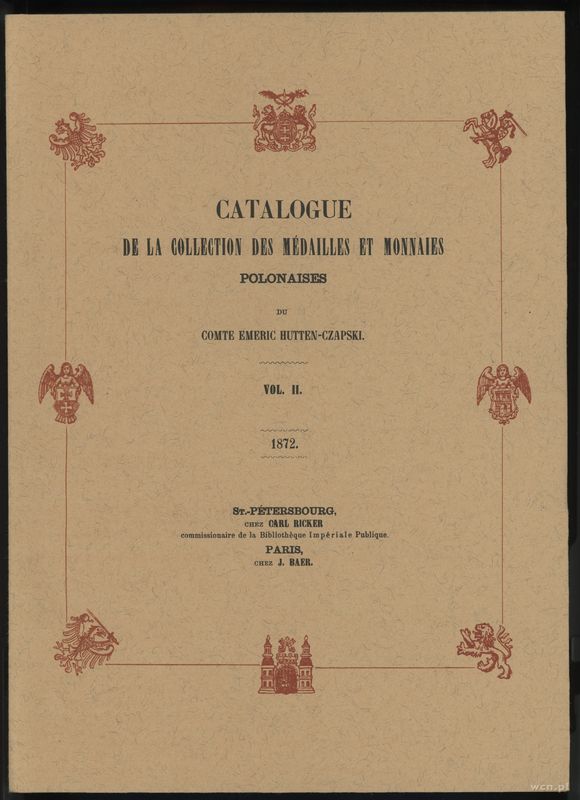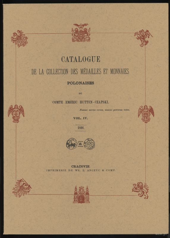 wydawnictwa polskie, Comte Emeric Hutten-Czapski - Catalogue de la Collection des Medailles et ..