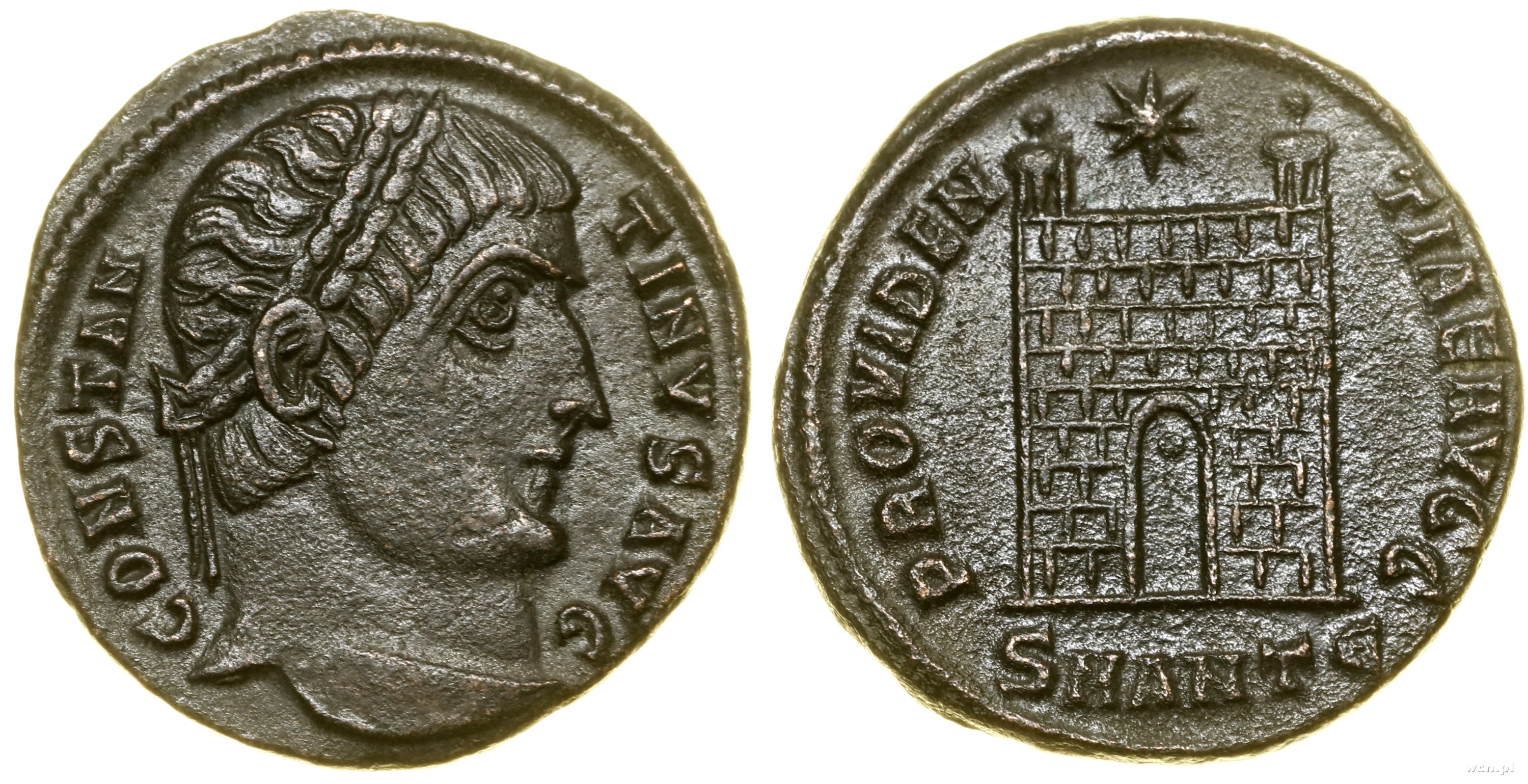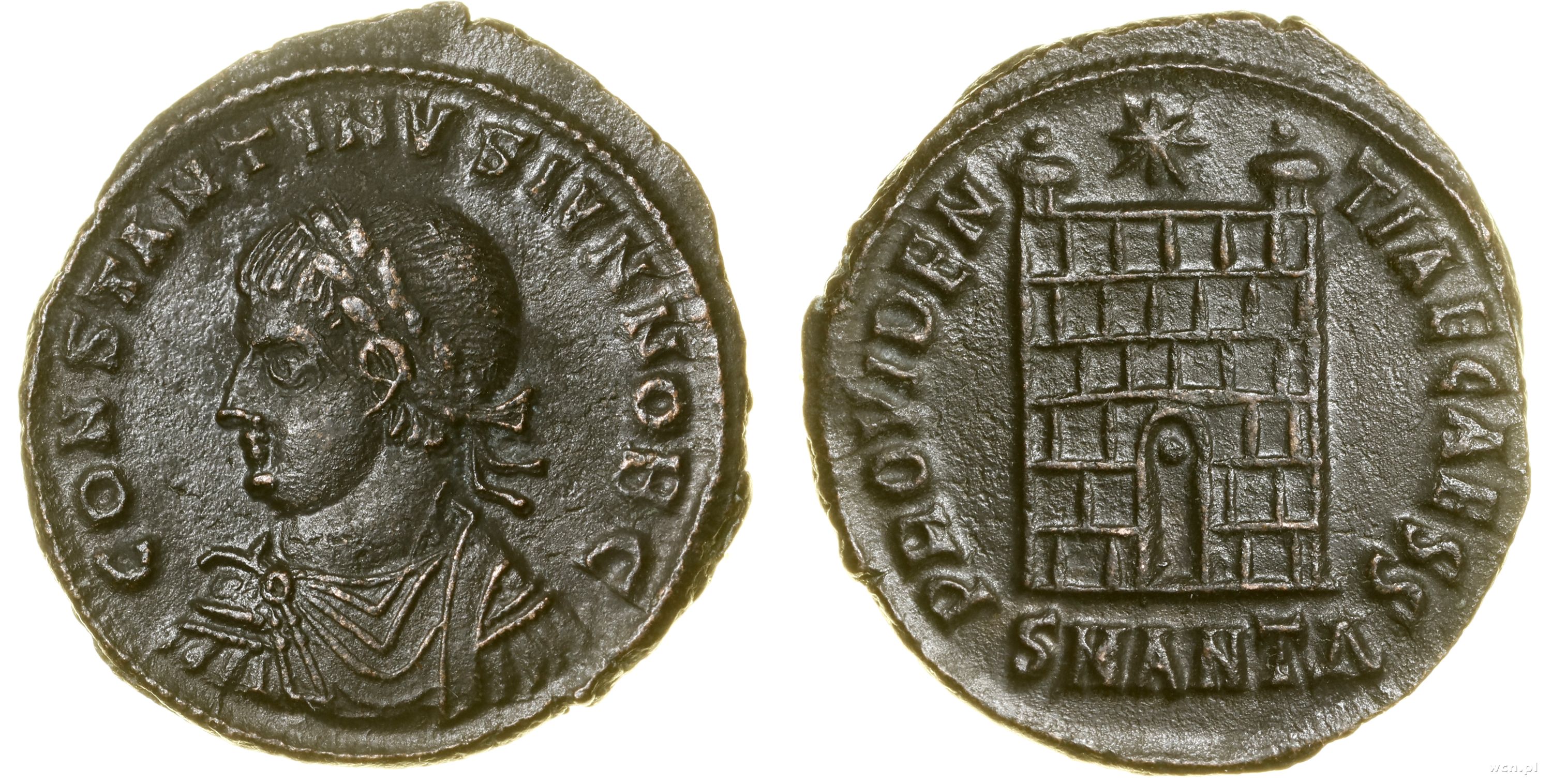 Aw: Popiersie cesarza w prawo, CONSTANTINVS AVG, Rw: Bram... | III+ |