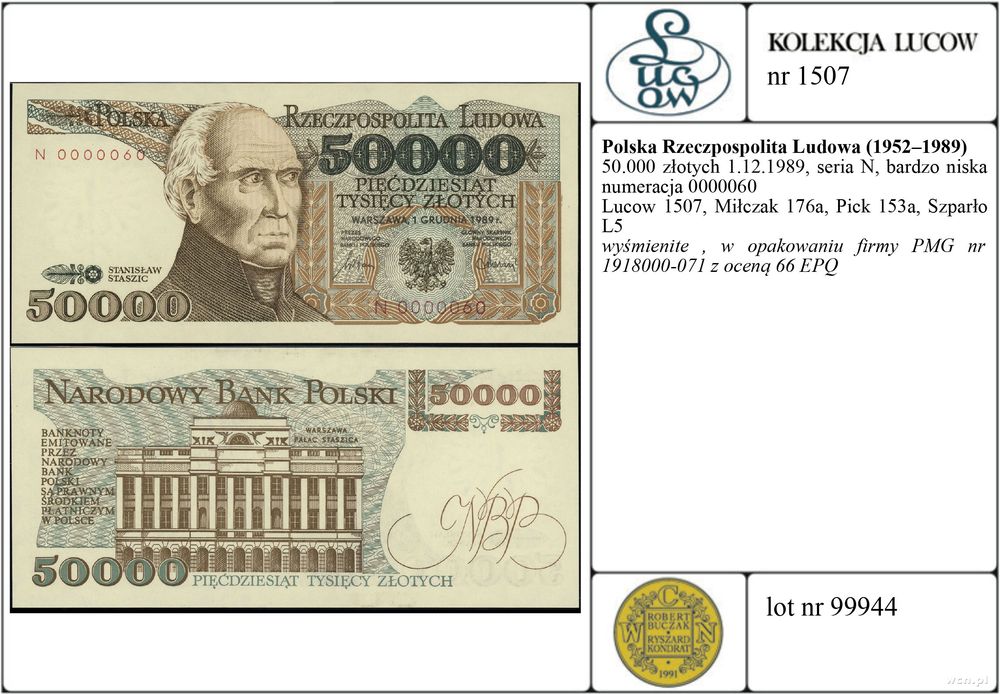 | Opis: | Polska - Polska Rzeczpospolita Ludowa (1952–1989), 50.000 złotych, 1.12.1989, seria N, bardzo niska numeracja 0000060 |