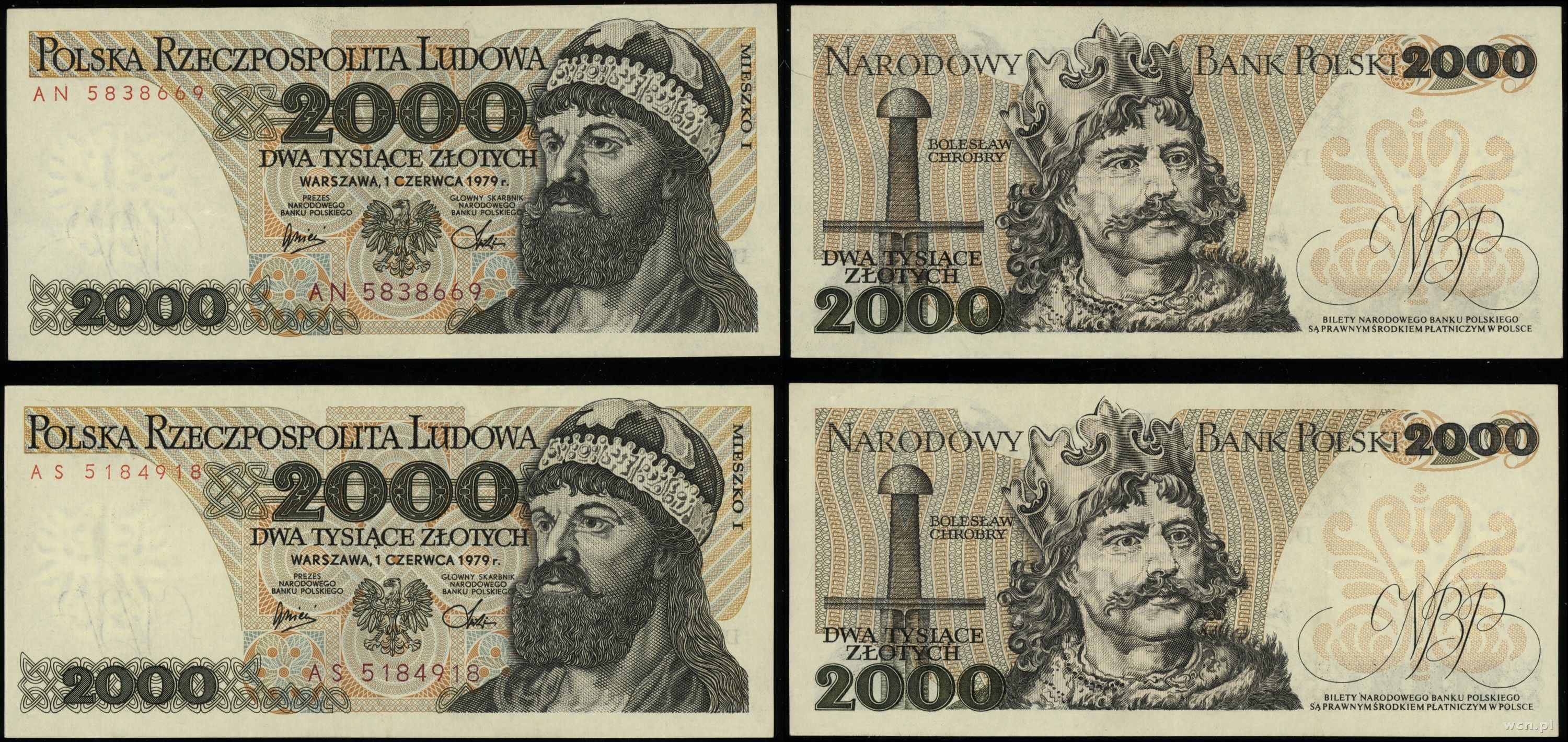 | Opis: | Polska - Polska Rzeczpospolita Ludowa (1952–1989), zestaw 2 banknotów, 1.06.1979, rzadkie serie AN i AS |