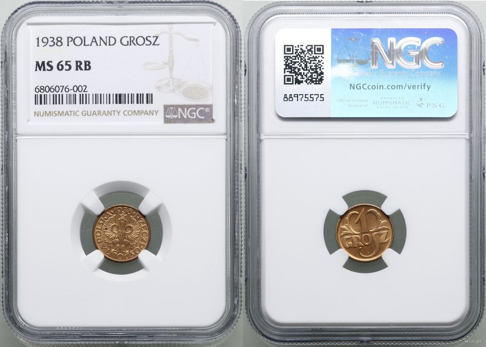 | Dodatkowe informacje: | pięknie zachowany, naturalna czerwona barwa , w opakowaniu firmy NGC nr 6806076-002 z oceną MS65 RB |