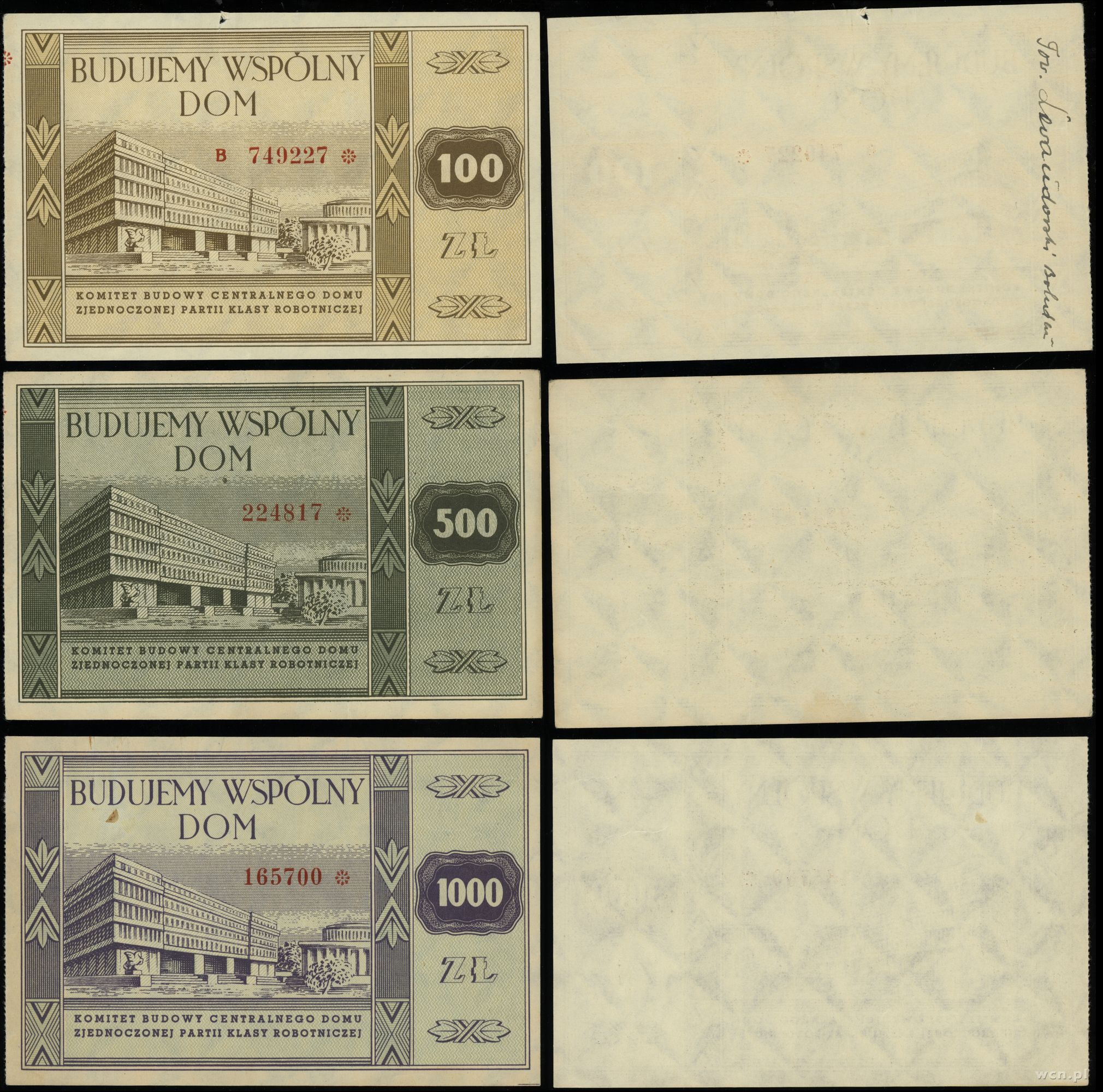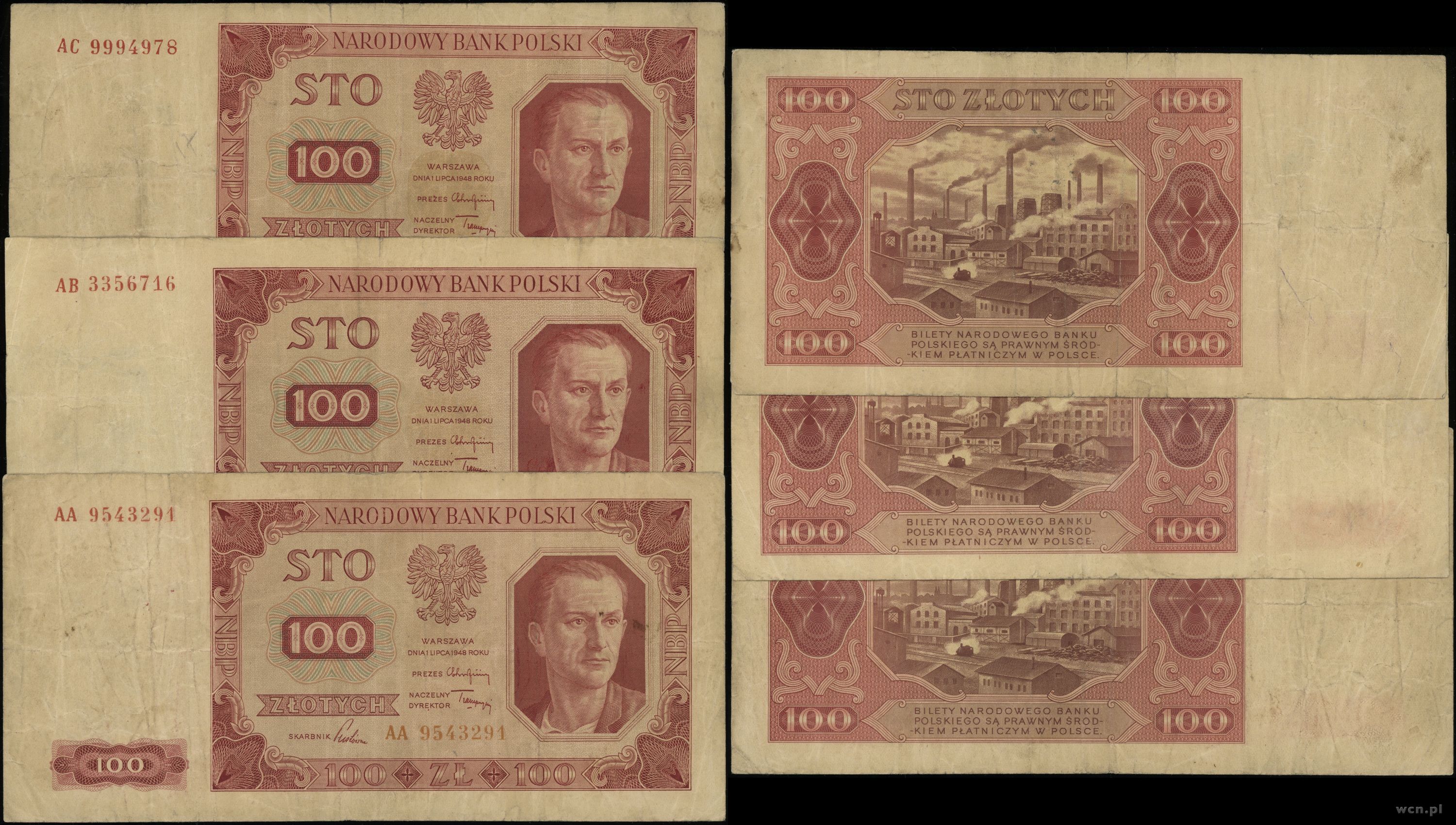 Polska, zestaw: 3 x 100 złotych, 1.07.1948