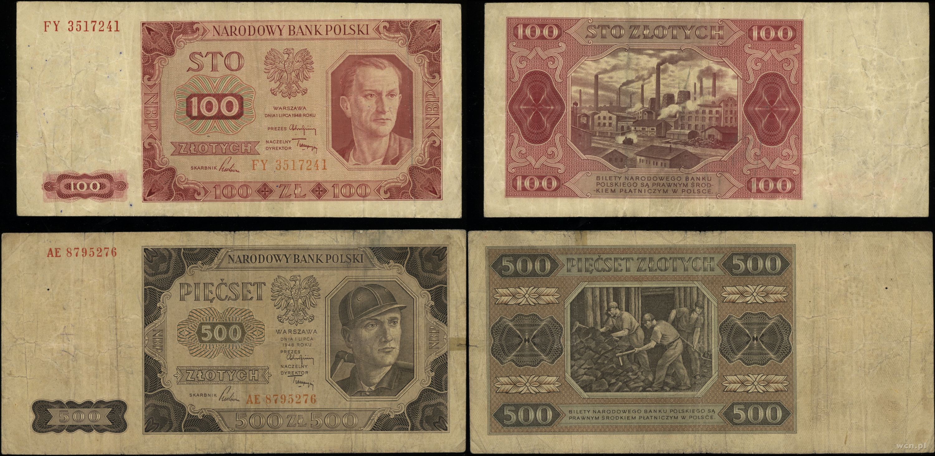 Polska, zestaw: 100 i 500 złotych, 1.07.1948