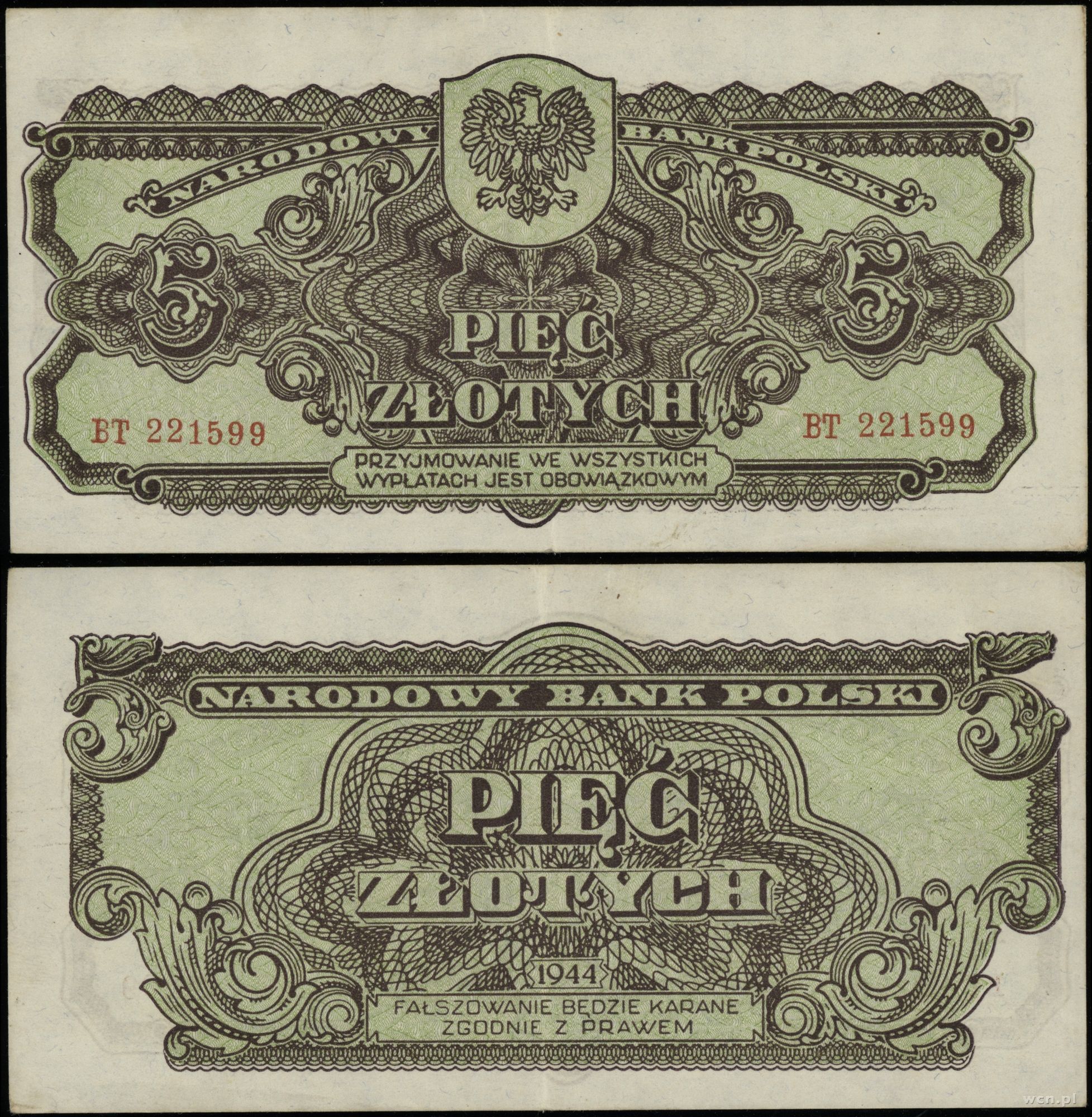 Polska, 5 złotych, 1944