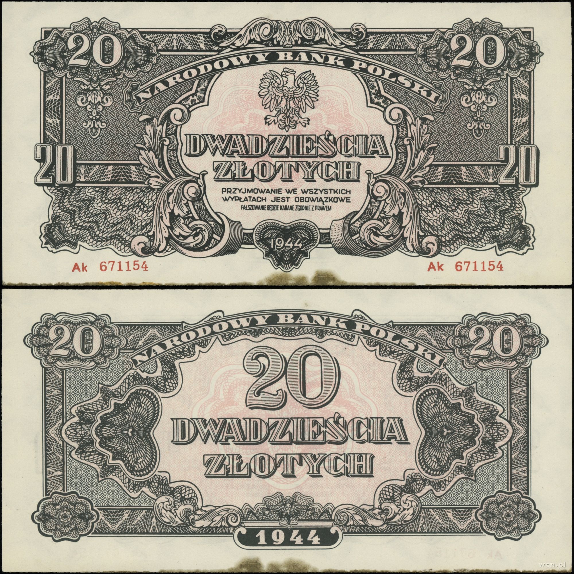 Polska, 20 złotych, 1944