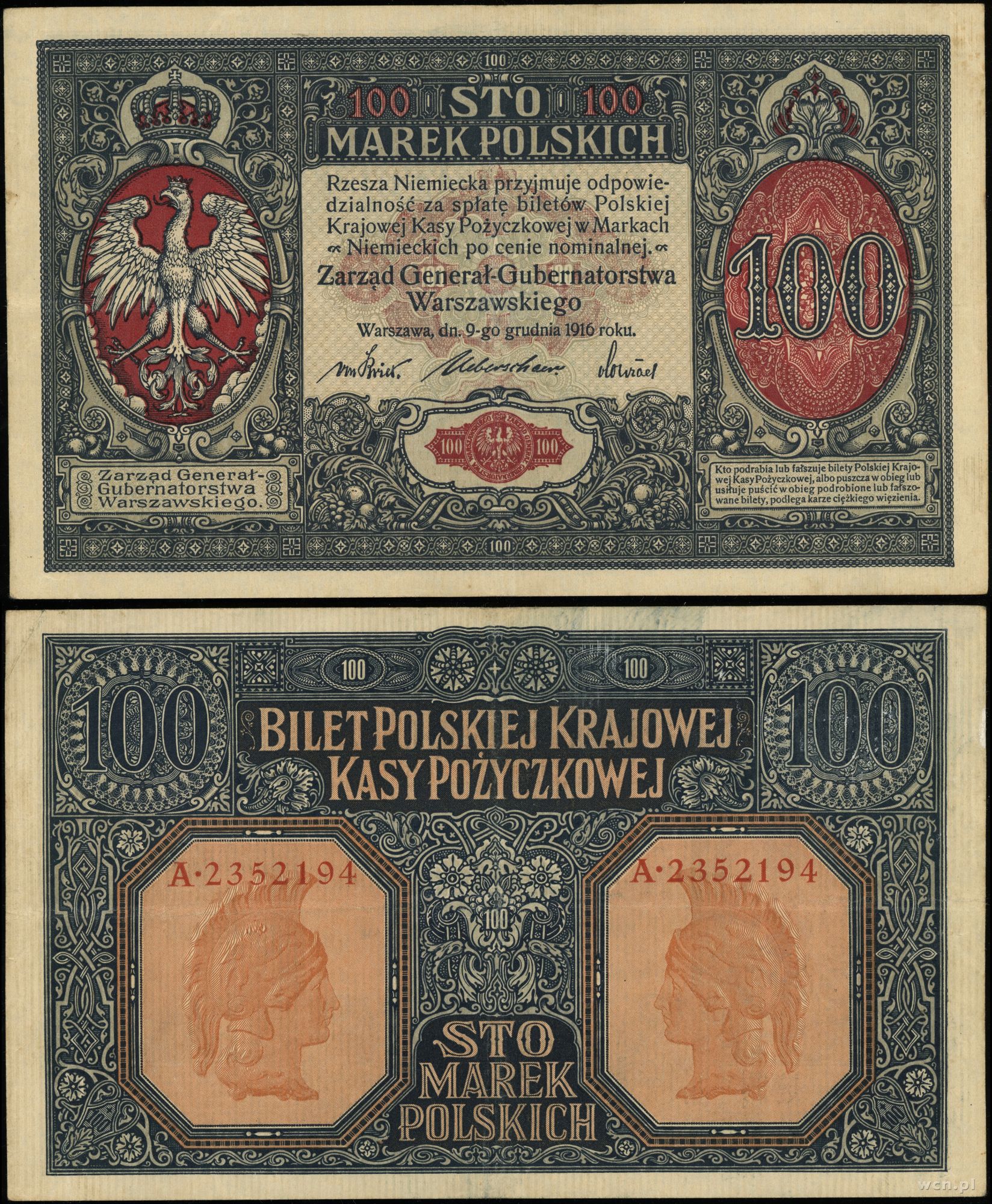 Polska, 100 marek polskich, 9.12.1916